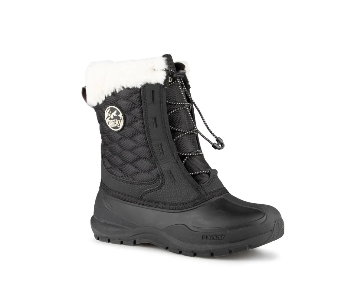 Les bottes d’hiver Blue Rocky pour filles sont conçues pour offrir chaleur et confort dans les conditions hivernales. Avec une tige en nylon et cuir synthétique, elles assurent une protection efficace contre le froid. L’ajustement à lacets élastiques et Togo garantit un maintien sécurisé, tandis que la doublure en feutre amovible de 8 mm assure une isolation supplémentaire pour garder les pieds au chaud. La semelle extérieure en TPR offre une excellente adhérence et durabilité, et la semelle intérieure en feutre de 4 mm ajoute un confort supplémentaire.