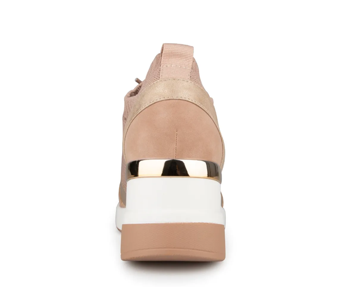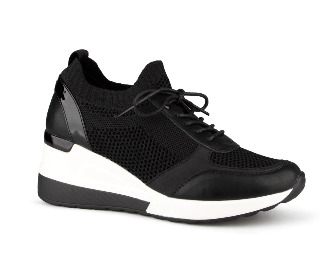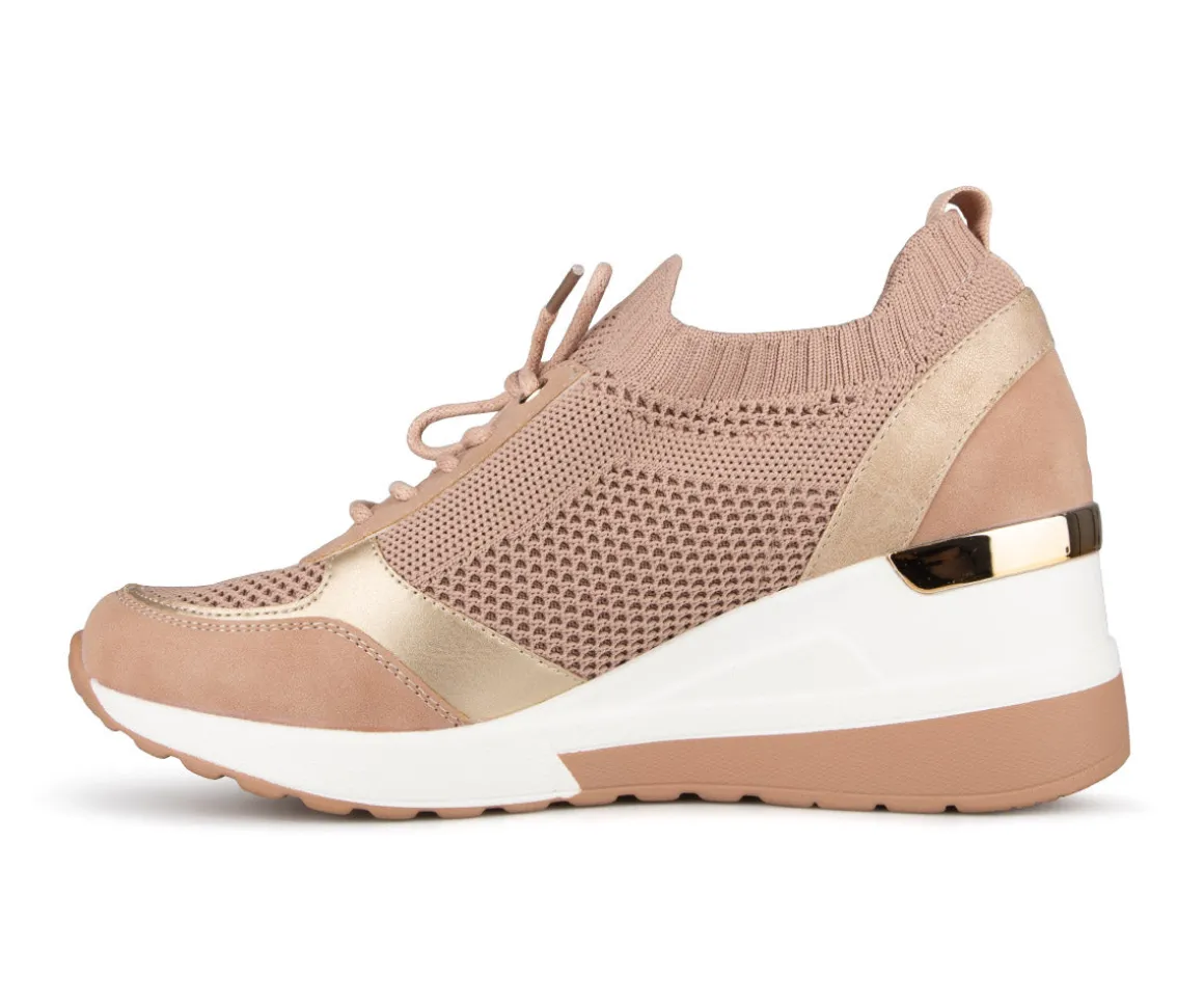 Chaussures Alberto pour femmes en tissu maillé et talon compensé. Disponible en deux couleurs (noir et rose).