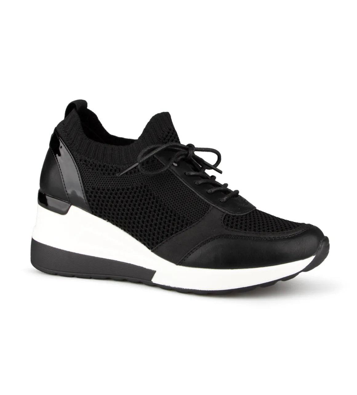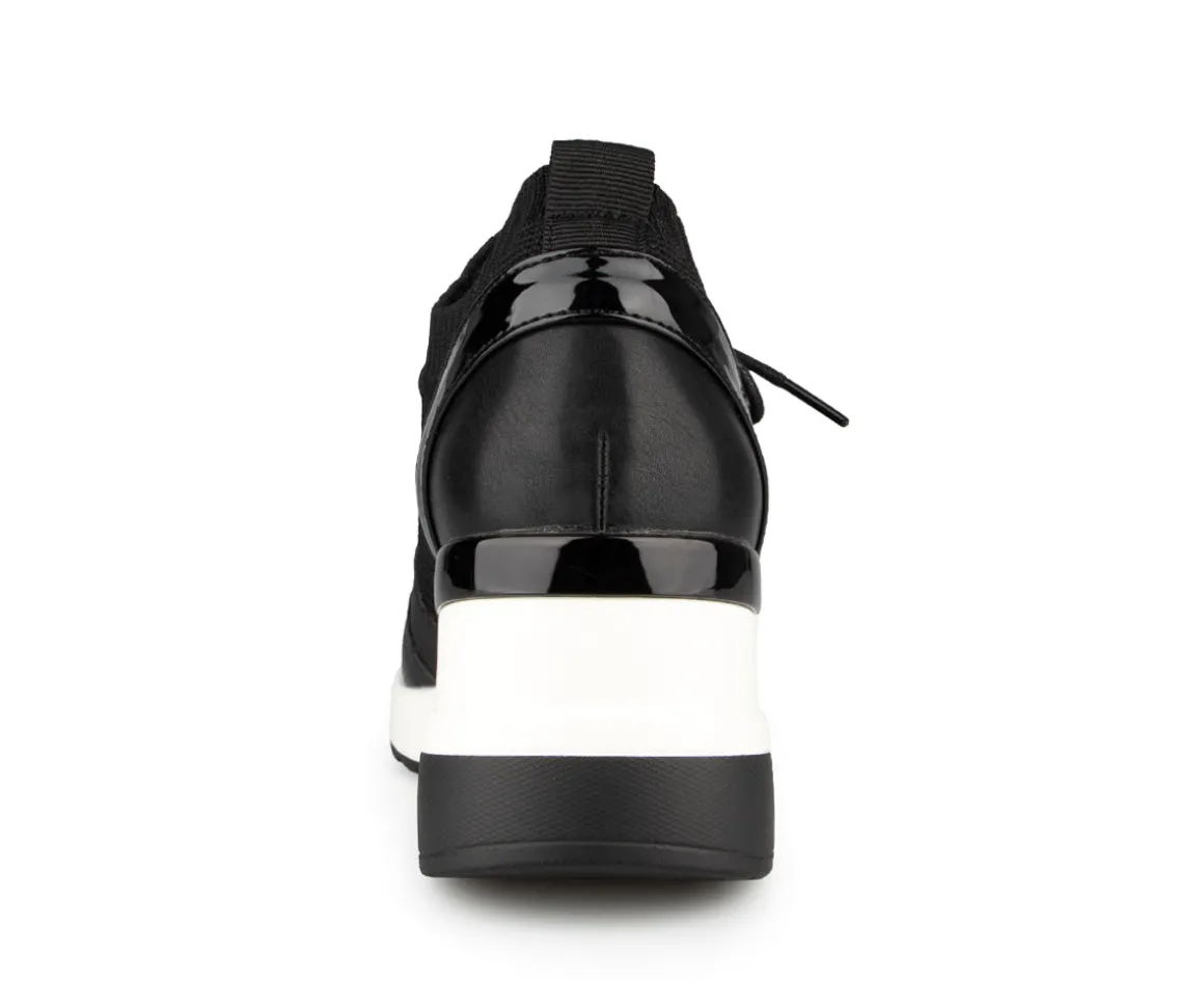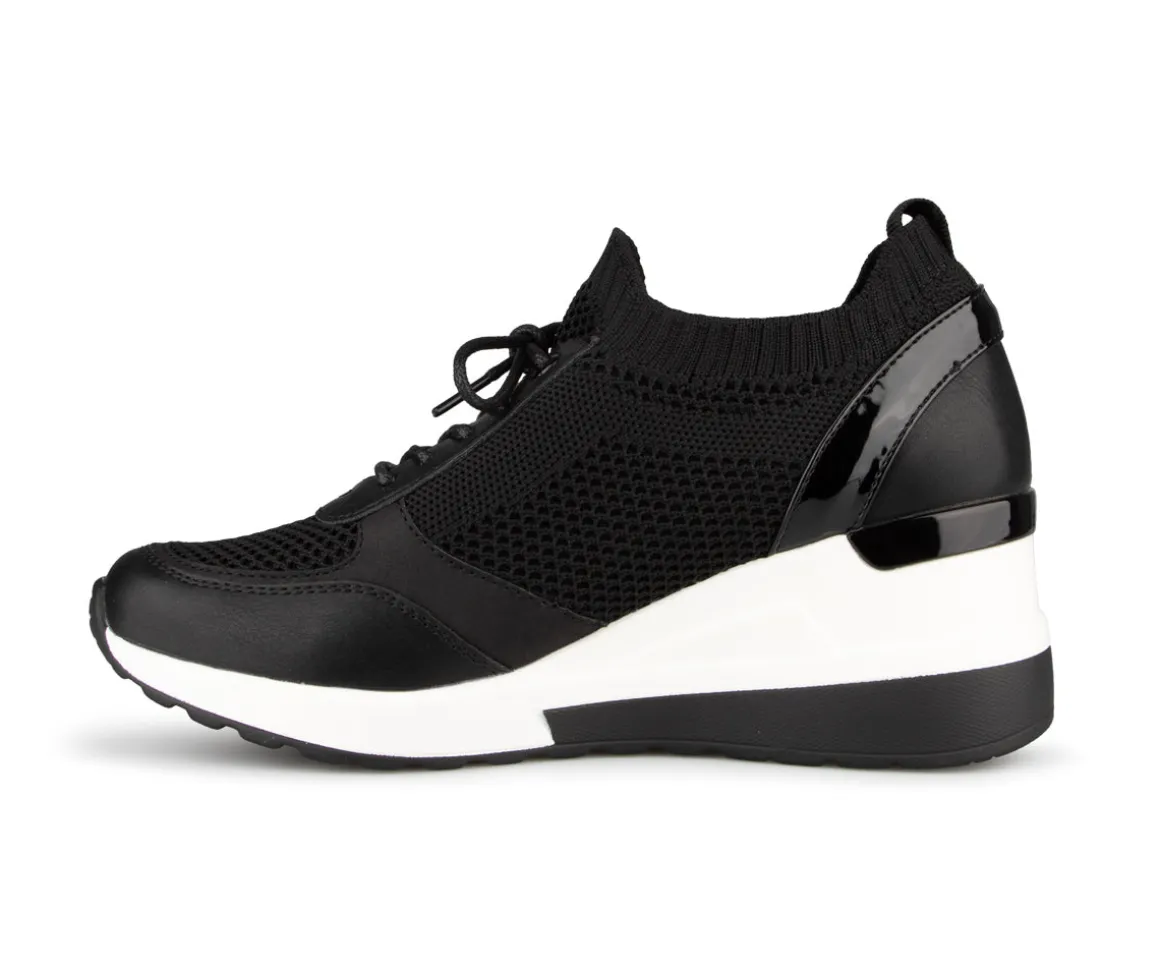 Chaussures Alberto pour femmes en tissu maillé et talon compensé. Disponible en deux couleurs (noir et rose).