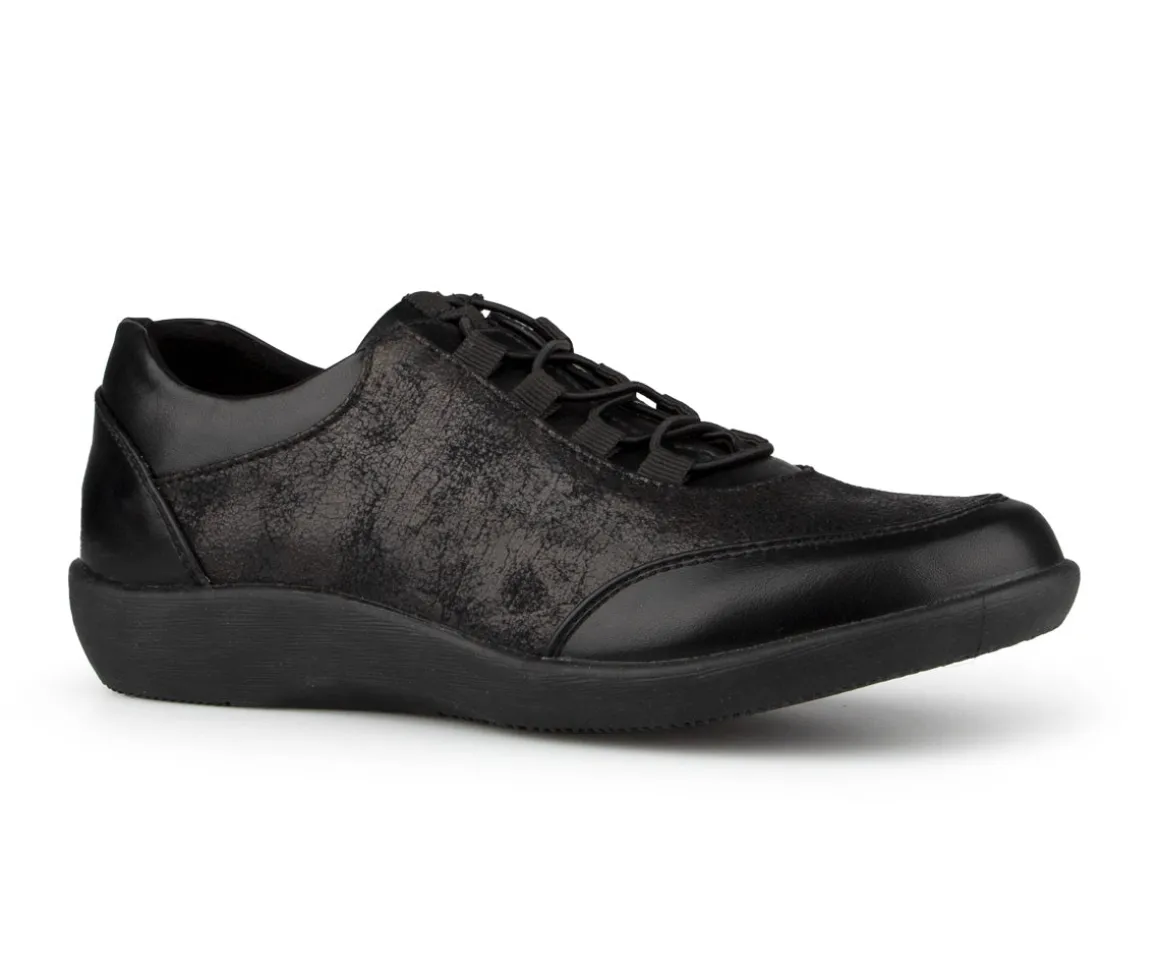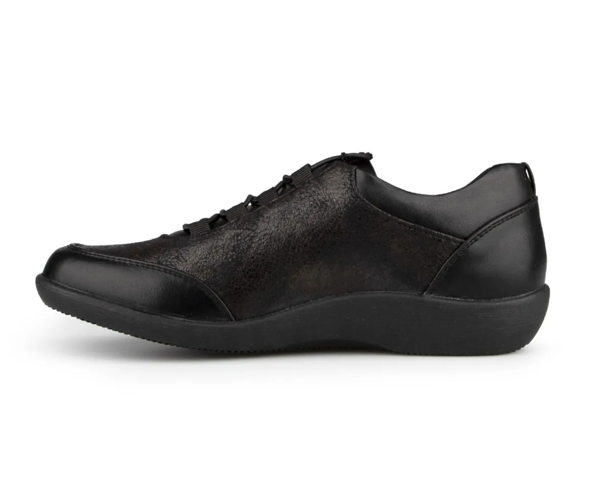 Ces chaussures de type flâneur Ultime Confort pour femmes sont en cuir synthétique avec des lacets élastiques. Que vous soyez à un concert en plein air ou à une fête estivale, ces talons plats vous permettent de rester à la mode tout en restant à l’aise.