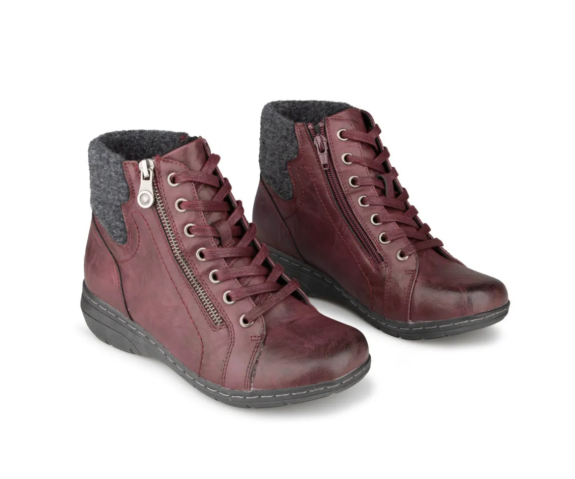 Ces bottillons courts Ultime Confort pour femmes allient praticité et style. Ils sont équipés de lacets et d’une fermeture éclair intérieure pour un enfilage facile. L’empeigne est faite de cuir synthétique et de feutre, avec un talon compensé pour une touche d’élégance. La doublure en imitation fourrure et la semelle intérieure amovible en feutre offrent un confort optimal, tandis que la semelle extérieure en TPR garantit une bonne durabilité.