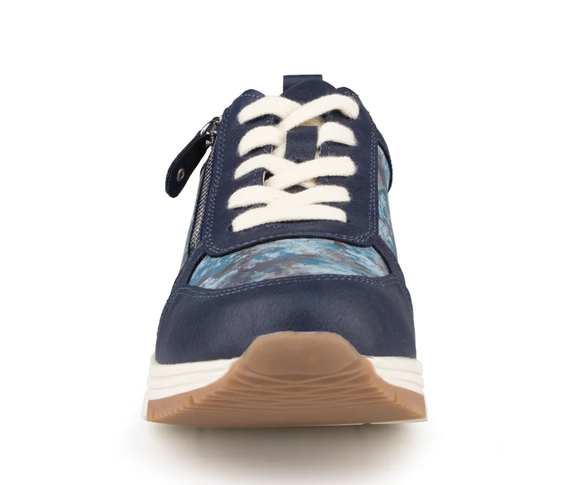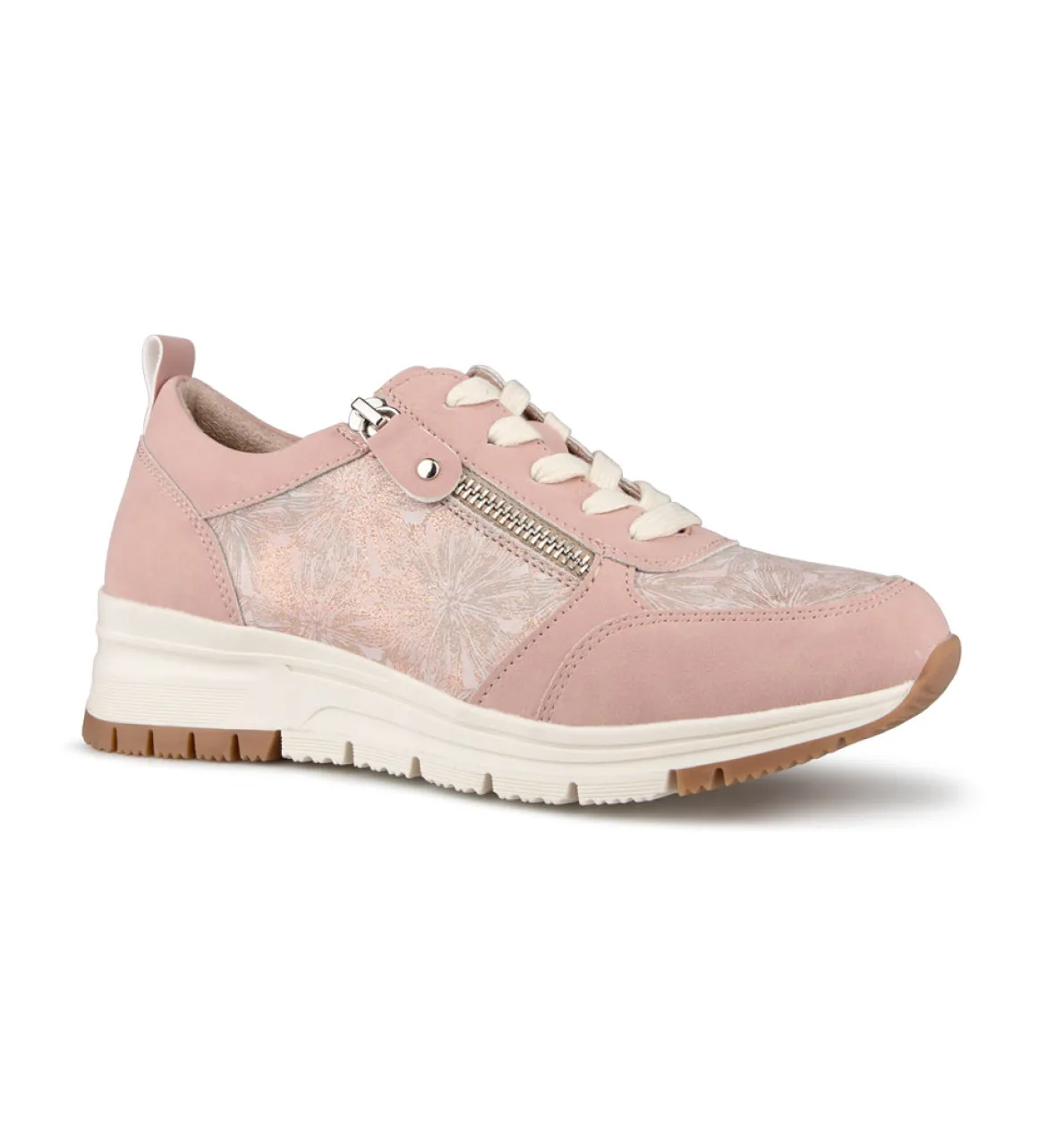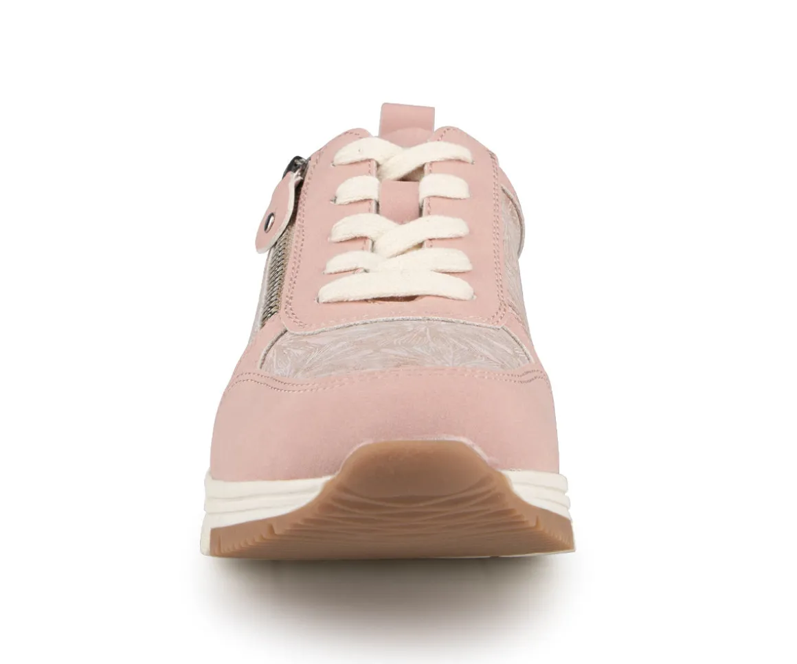 Chaussures lacées Alberto pour femmes à talon compensé et fermeture éclair extérieure. Disponible dans deux couleurs (bleue et rose).