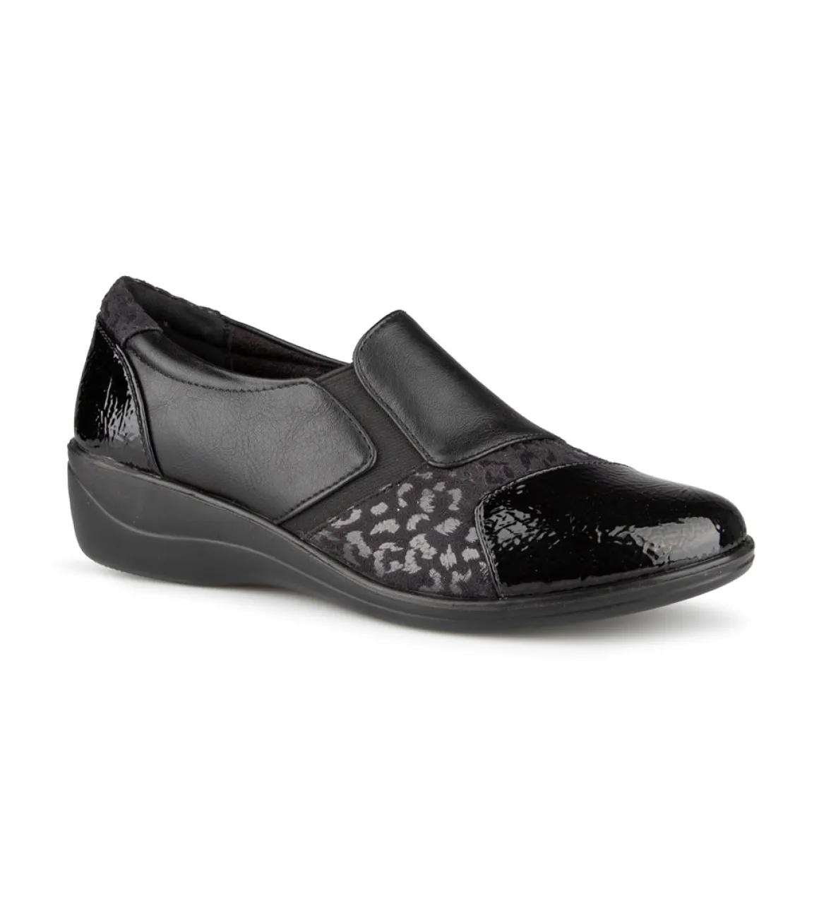La chaussure de type flâneur Ultime Confort pour femme combine style et commodité. Elle est dotée d’une empeigne élastique et d’un talon compensé de 1.5 pouces, offrant un confort optimal tout au long de la journée.