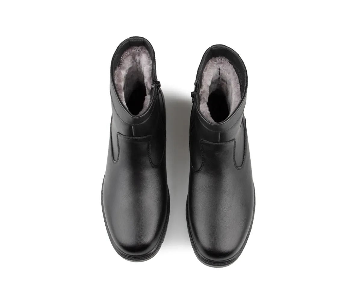 Explorez le confort et l’élégance avec nos bottes d’hiver Balec pour hommes. À talon plat, elles offrent une isolation optimale (800g) et une chaleur supplémentaire grâce à l’imitation fourrure. La semelle en caoutchouc assure une adhérence fiable, tandis que le feutre amovible procure une polyvalence toute saison.