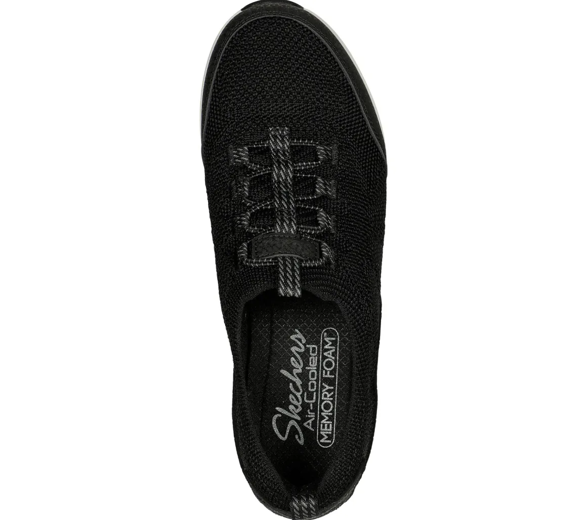 Ces chaussures Be-Cool de Skechers pour femmes sont de types flâneurs avec empeigne élastique en tissu maillé.