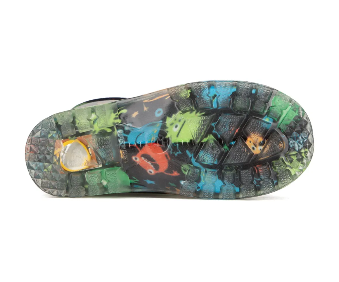 Les bottes de pluie Blue Rocky pour garçons allient fun et protection. Fabriquées en PVC durable avec collet en nylon et togo, elles sont 100 % imperméables. Les lumières aux talons ajoutent un côté ludique pour courir et sauter dans les flaques en toute sécurité.