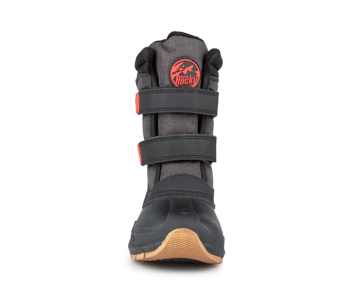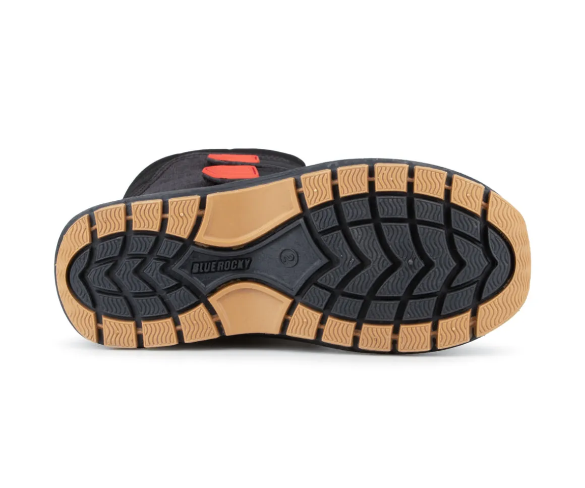 Ces bottes d’hiver Blue Rocky pour enfants combinent confort, chaleur et durabilité. Leur tige en nylon et cuir synthétique assure une bonne protection, tandis que l’ajustement à deux velcros facilite l’enfilage. Le feutre amovible de 8 mm garde les pieds au chaud, et la coque avec semelle extérieure en TPR offre une adhérence fiable et une protection optimale sur les surfaces enneigées et glacées.