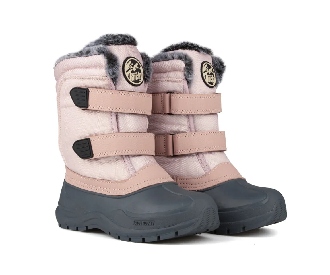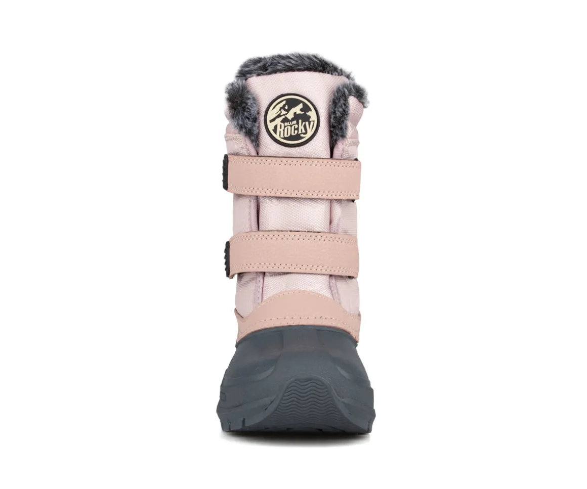 Ces bottes d’hiver Blue Rocky pour petites filles gardent les pieds bien au chaud et protégés tout l’hiver. Leur tige en nylon et cuir synthétique assure durabilité et confort, tandis que les deux velcros facilitent l’ajustement et l’enfilage. Le feutre amovible de 8 mm procure une chaleur fiable, et la coque avec semelle extérieure en TPR offre une protection robuste et une bonne adhérence sur les surfaces enneigées et glacées.