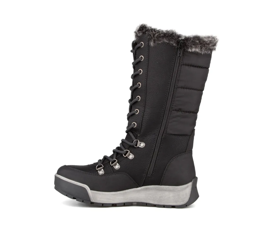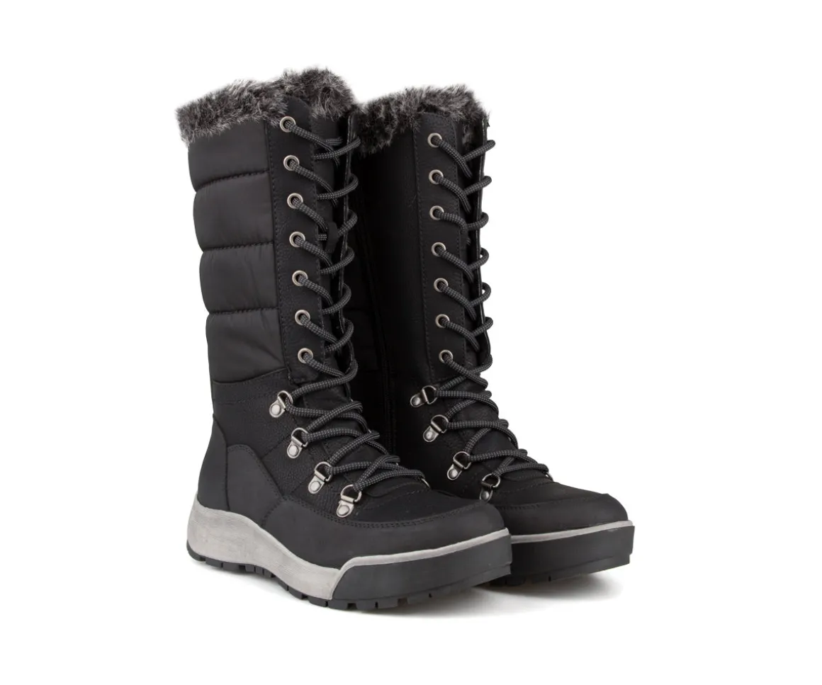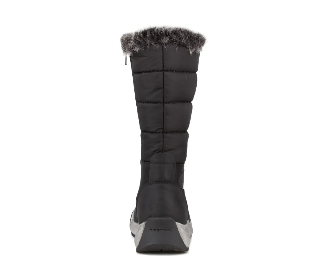 Ces bottes d’hiver hautes West Way pour femmes allient chaleur, confort et protection contre l’humidité. Fabriquées en cuir synthétique et nylon avec collet en fourrure, elles sont dotées de la membrane Aquatex imperméable pour garder vos pieds au sec. La semelle intérieure amovible en feutre assure isolation et confort, tandis que la semelle extérieure en TPR antidérapante garantit stabilité sur toutes les surfaces hivernales. Hauteur du talon : 1,5 pouces.