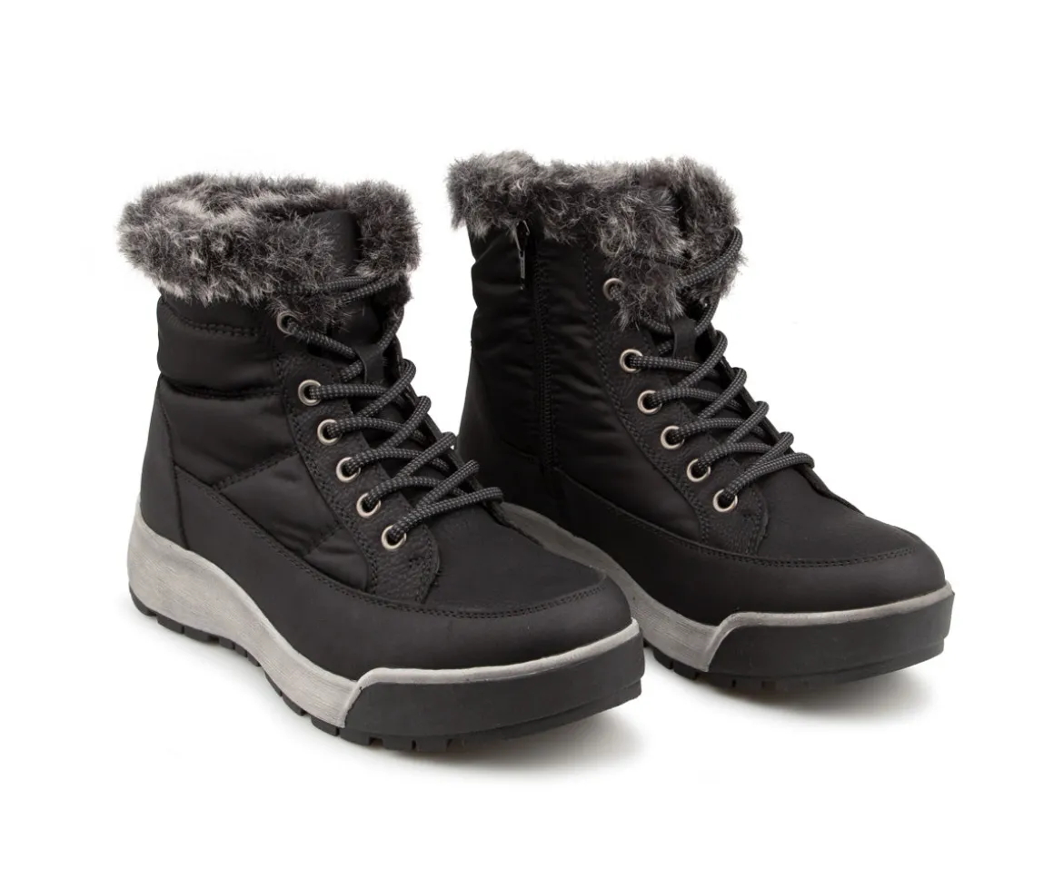 Préparez-vous pour l’hiver avec ces bottes West Way conçues pour affronter les températures froides et les conditions humides. Dotées d’une membrane imperméable Aquatex, elles gardent vos pieds bien au sec. Leur doublure en laine synthétique et leur semelle intérieure en feutre amovible assurent chaleur et confort au quotidien. Fabriquées en matériaux durables comme le nubuck PU, le nylon et la fausse fourrure, elles sont à la fois pratiques et stylées.