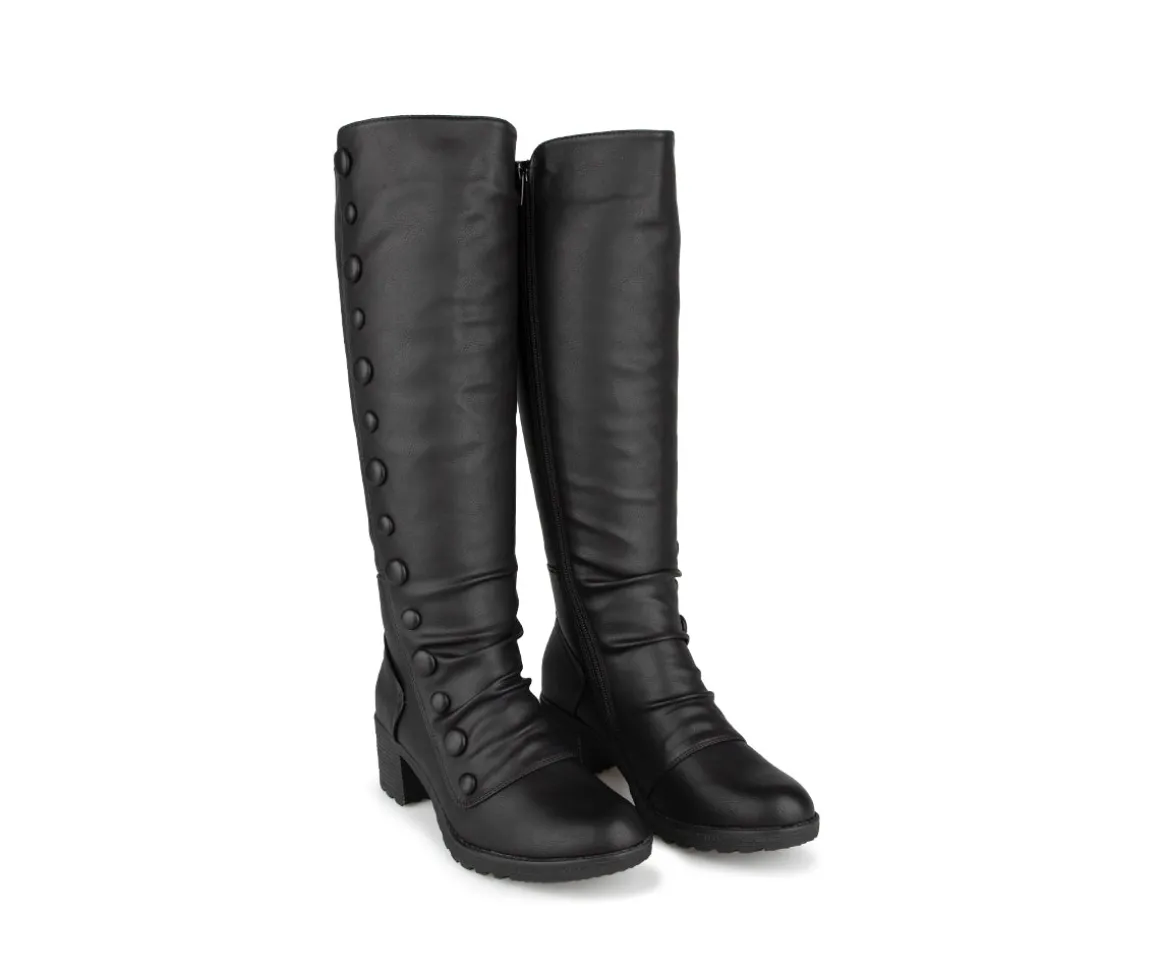 Ces bottes longues Alberto pour femmes, dotées d’un talon carré de 2 pouces sont parfaites pour une soirée en ville. La fermeture éclair intérieure facilite l’enfilage, tandis que l’empeigne en cuir synthétique, agrémentée d’un élastique à l’arrière, assure un ajustement parfait. La doublure en fourrure synthétique courte procure chaleur et confort, tandis que la semelle intérieure en feutre offre un bon amortissement.