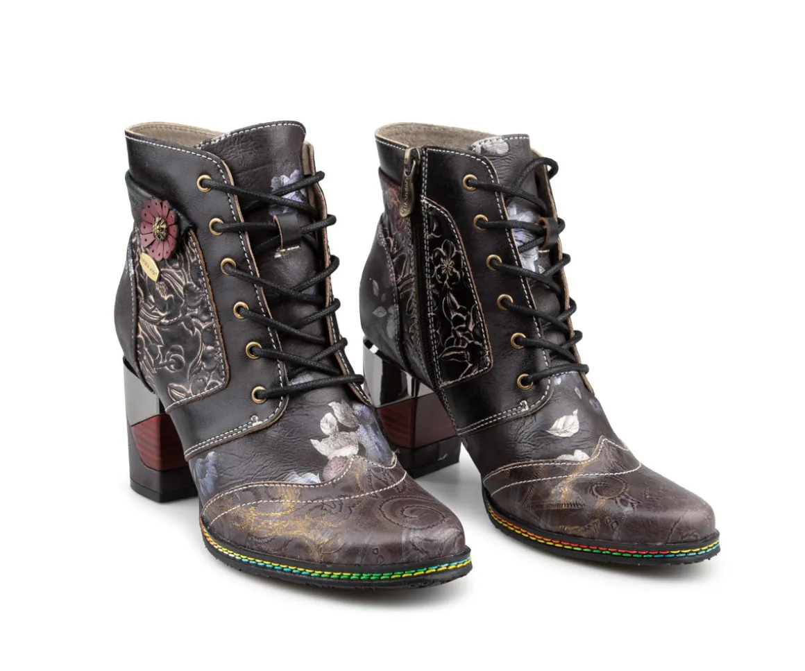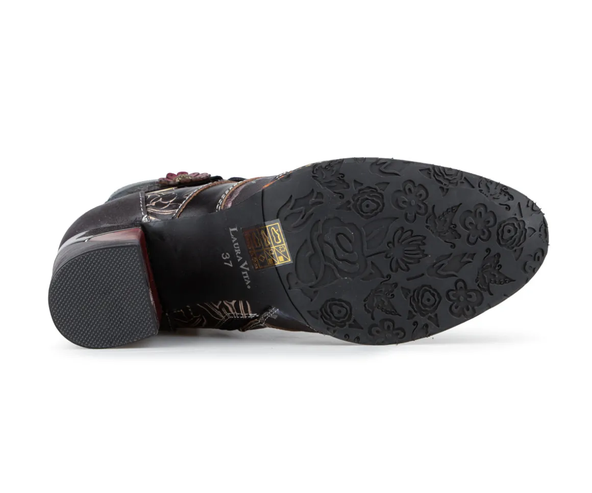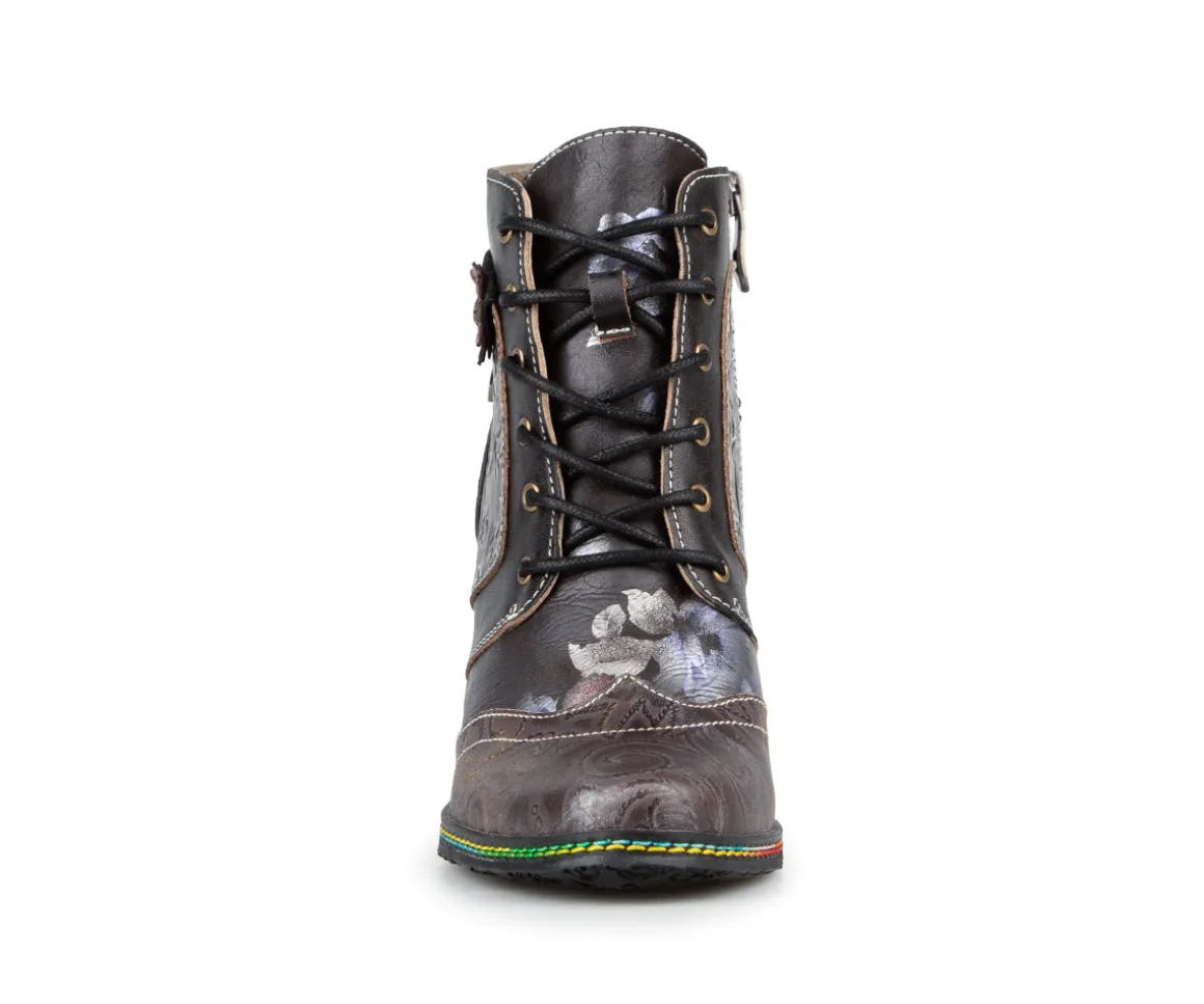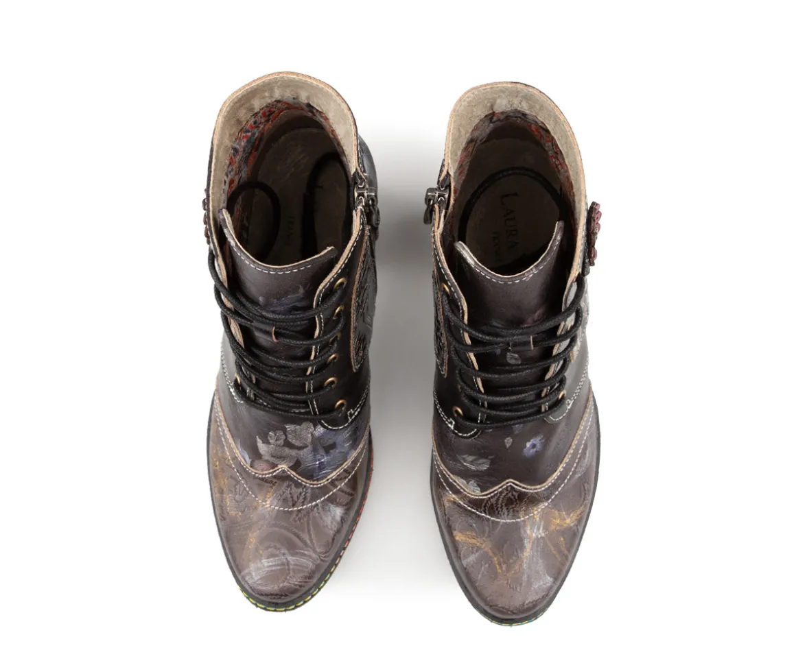 Exprimez votre personnalité avec ces bottillons Laura Vita au design unique et coloré. Fabriqués en cuir imprimé de qualité, ils allient originalité et élégance. Leur talon haut orné d’un motif assorti ajoute une touche artistique à chaque pas, tandis que la fermeture éclair intérieure permet un enfilage facile. Confortables grâce à leur doublure textile et leur semelle intérieure en cuir, ces bottillons sont parfaits pour rehausser vos tenues avec audace.