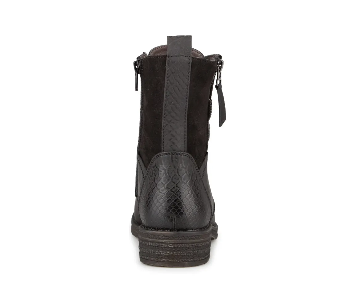 Ces bottillons pour femmes combinent confort et style avec une doublure douce en imitation fourrure. Fabriqués en PU et microfibre, ils sont faciles à enfiler grâce à leur laçage et fermeture éclair YKK. Semelle intérieure en feutre amovible et talon plat de 1,25 po pour un confort optimal au quotidien.