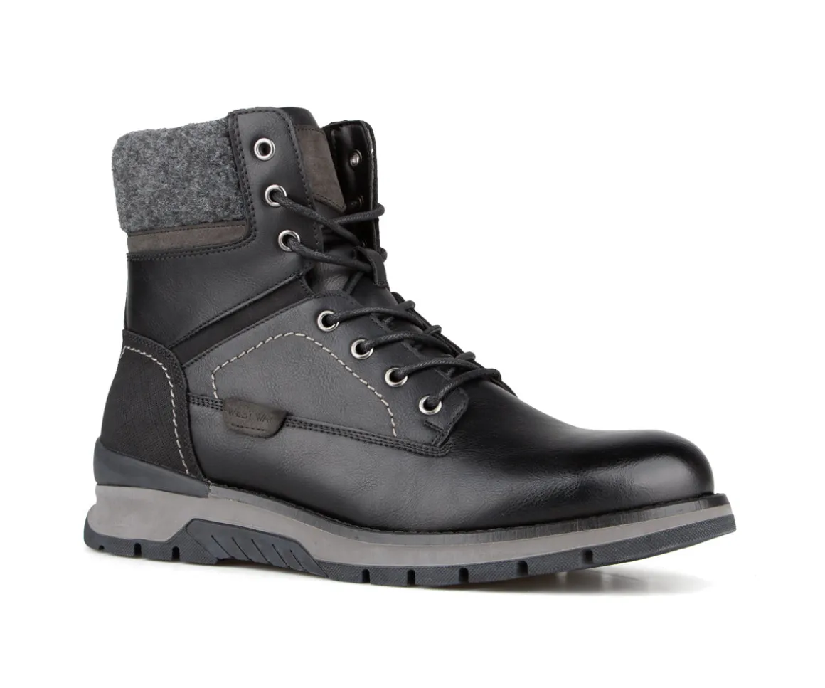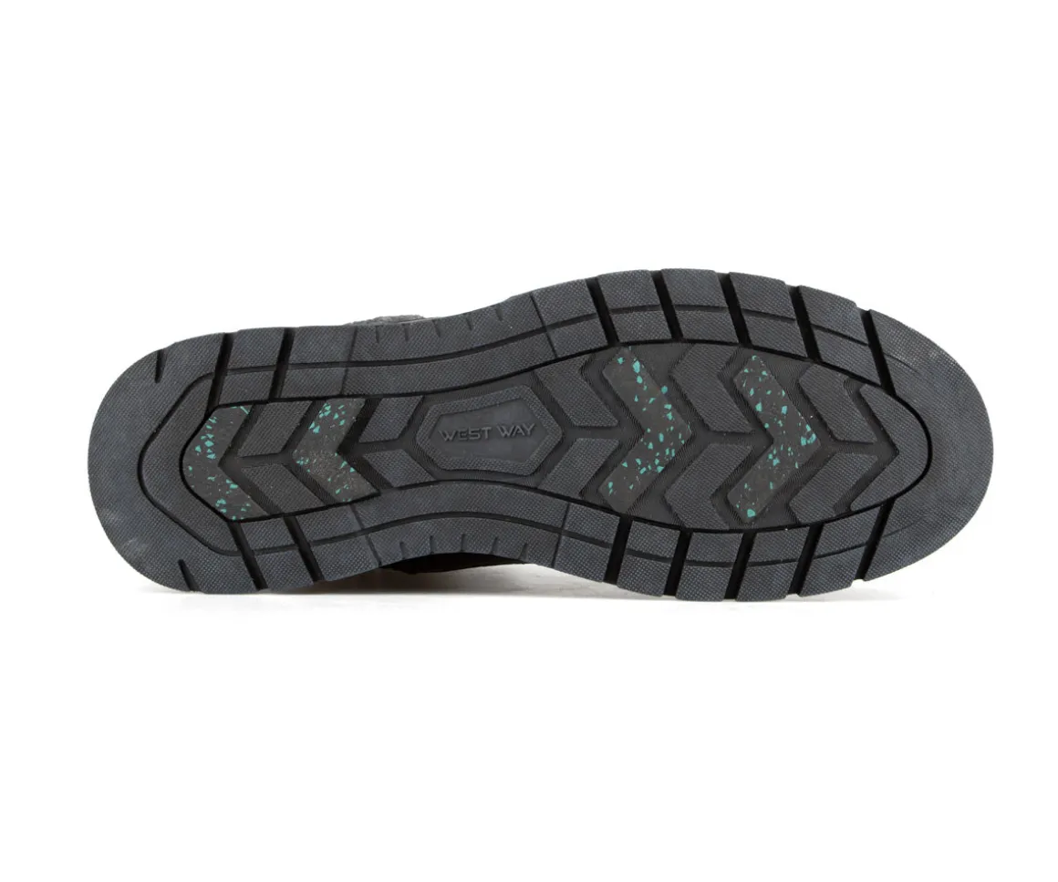 Ces bottillons lacés West Way pour hommes combinent confort et robustesse pour vos activités quotidiennes. Fabriqués en PU Nubuck et feutre, ils sont dotés d’une fermeture éclair intérieure YKK pour un enfilage facile. La doublure en laine synthétique et la semelle intérieure amovible en feutre avec bon amorti offrent chaleur et confort, tandis que la semelle extérieure en caoutchouc avec Artic Grip assure adhérence et stabilité sur différentes surfaces.