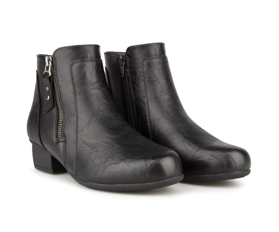 Ces bottillons pour femmes offrent un confort exceptionnel tout au long de la journée. Fabriqués en PU durable avec doublure en feutre, ils gardent vos pieds au chaud. Leur talon moyen de 1,5 po et la fermeture éclair YKK facilitent l’enfilage tout en restant élégants.