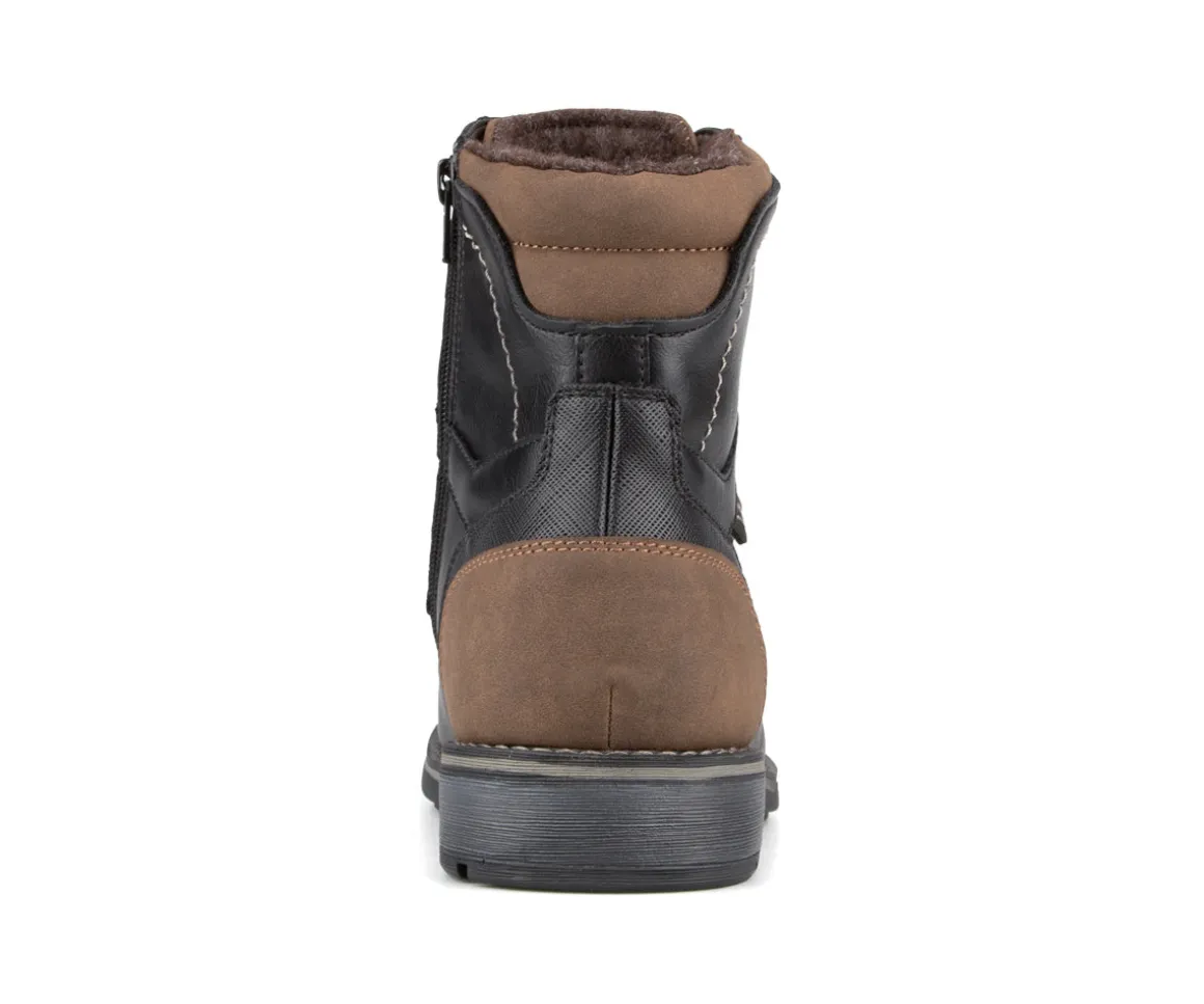 Ces bottillons West Way pour hommes allient style, confort et praticité. Fabriqués en cuir synthétique et doublés en feutre, ils gardent vos pieds au chaud tout au long de l’hiver. La semelle intérieure amovible offre confort et hygiène, tandis que la semelle extérieure en TPR assure adhérence et durabilité. Le système de lacets avec fermeture éclair facilite l’enfilage et le retrait, parfait pour un usage quotidien.