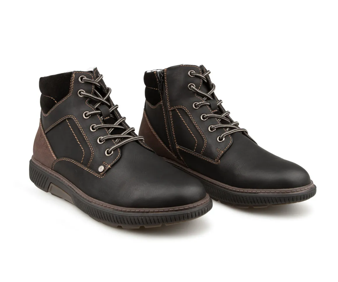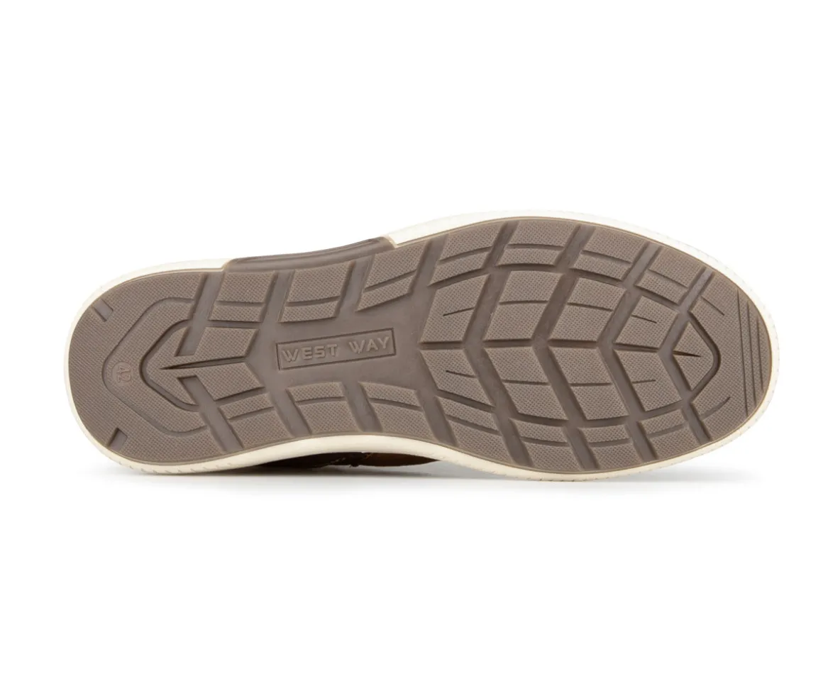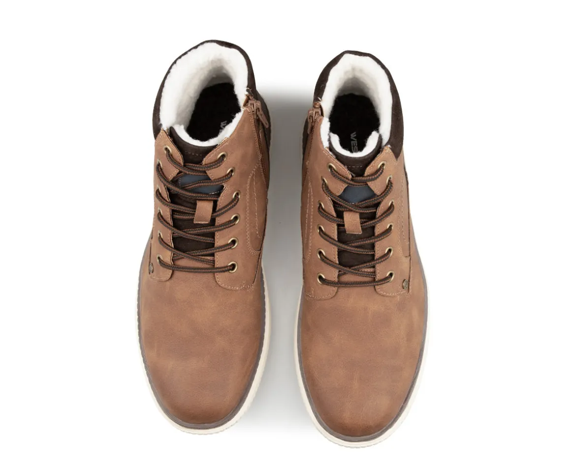 Ces bottillons West Way pour hommes offrent chaleur et confort grâce à leur doublure en laine synthétique. La fermeture éclair intérieure YKK permet un enfilage facile, tandis que la semelle intérieure amovible et la semelle extérieure en TPR assurent un bon amorti et une adhérence fiable au quotidien.