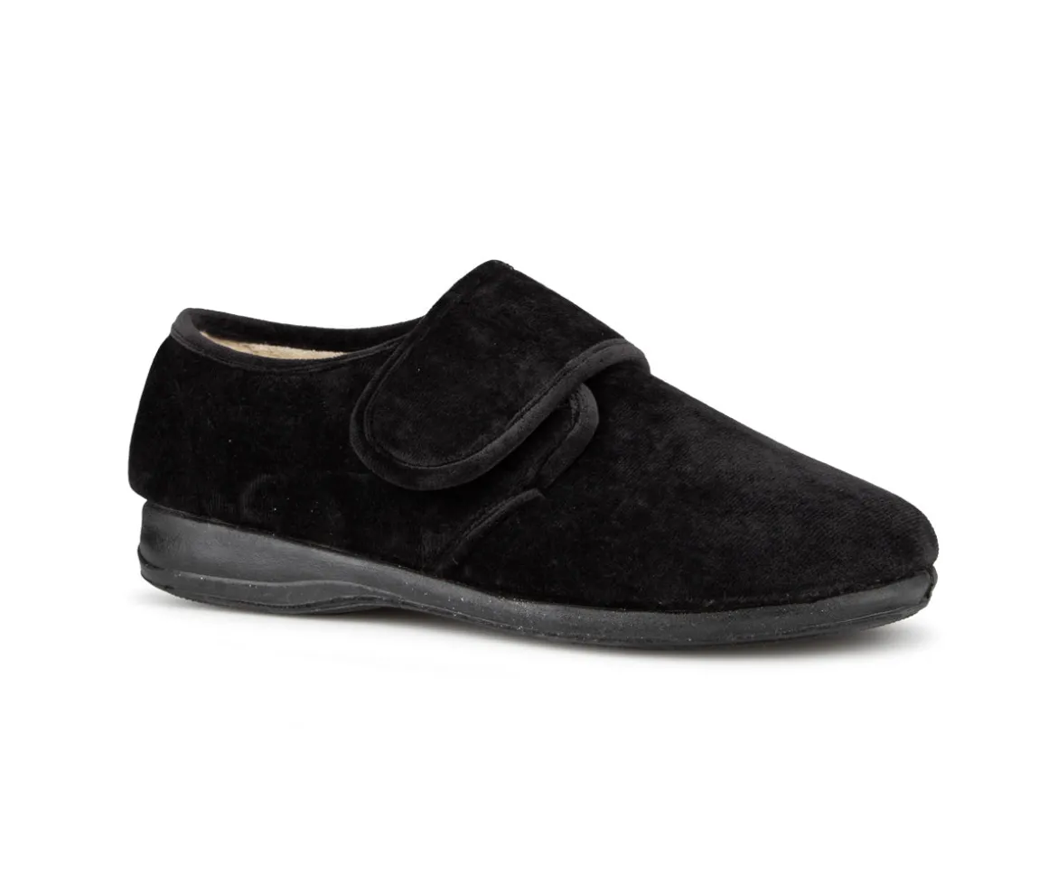 Les pantoufles Comfortcare pour hommes allient confort et praticité avec leur fermeture à velcro et leur doublure en imitation fourrure. La semelle en caoutchouc offre une bonne adhérence, parfaite pour une utilisation à l’intérieur.