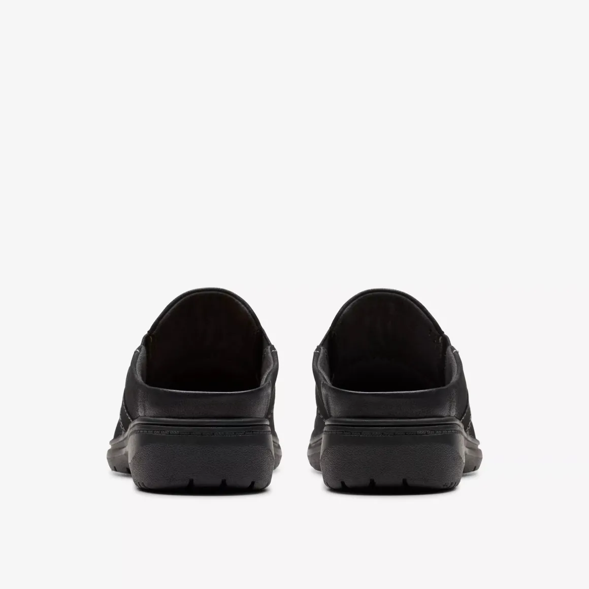 Ces chaussures à enfiler Clarks pour femmes allient élégance et facilité grâce à leur tige en nubuck noir de première qualité et leurs panneaux extensibles qui permettent un enfilage rapide. L’assise plantaire en mousse Ultimate Comfort offre un soutien durable tout au long de la journée, tandis que la semelle souple en TPR assure une excellente stabilité.