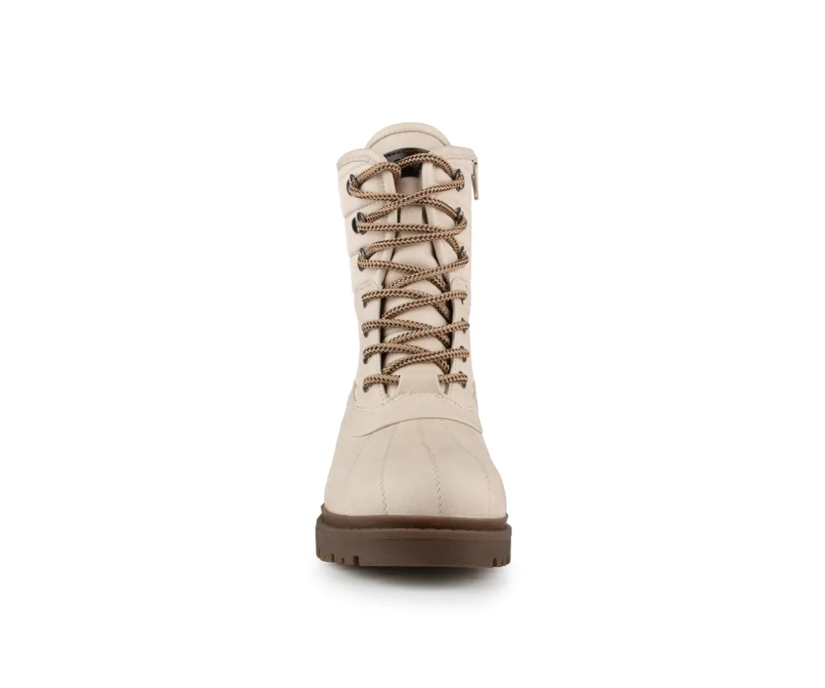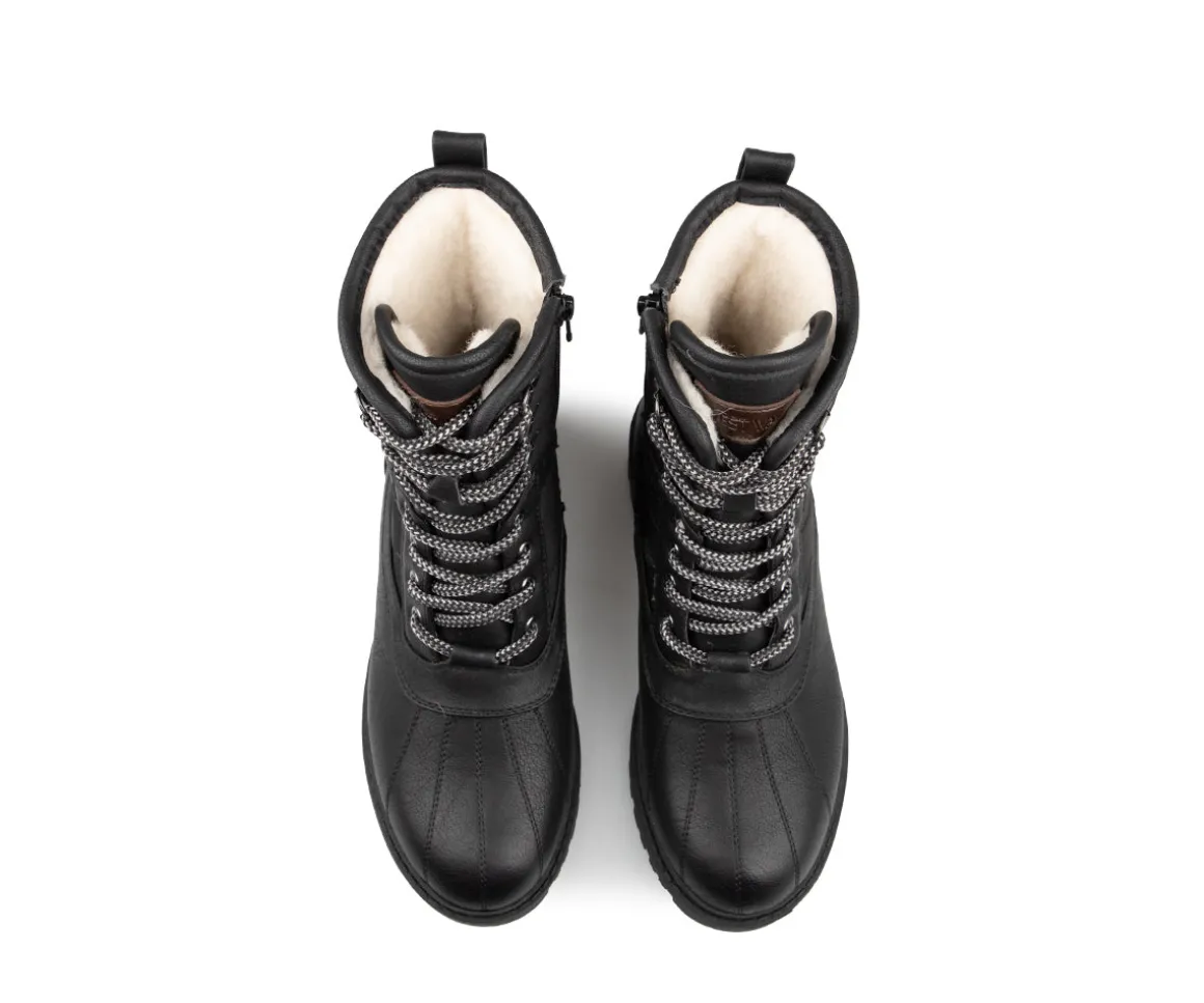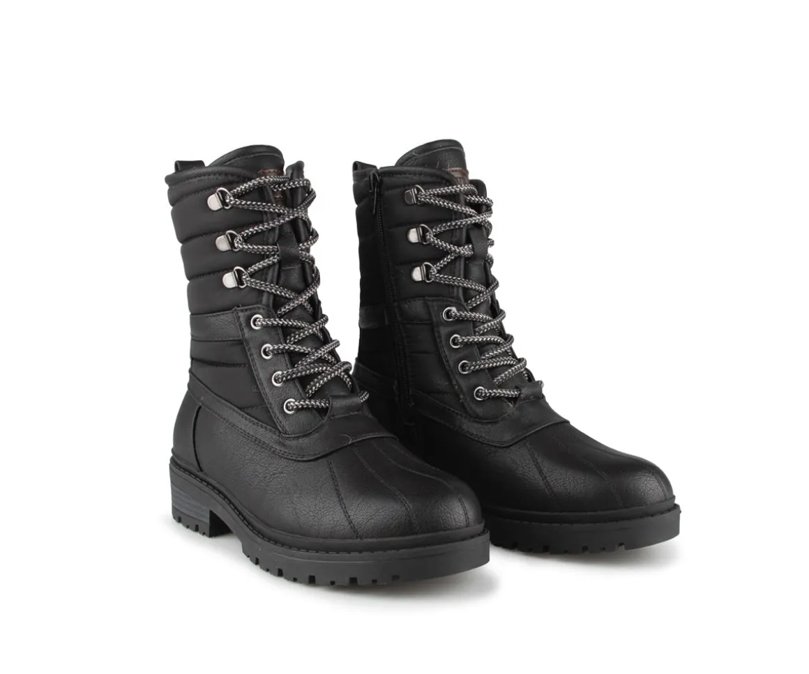 Ces bottes d’hiver West Way pour femmes, dotées d’un talon plat, offrent confort et chaleur pour les journées froides. Elles sont lacées et munies d’une fermeture éclair intérieure pour un ajustement facile. La doublure en 50% laine et la semelle intérieure en feutre procurent une excellente isolation thermique. La semelle extérieure en caoutchouc avec Artic Grip assure une adhérence supérieure sur les surfaces glissantes.