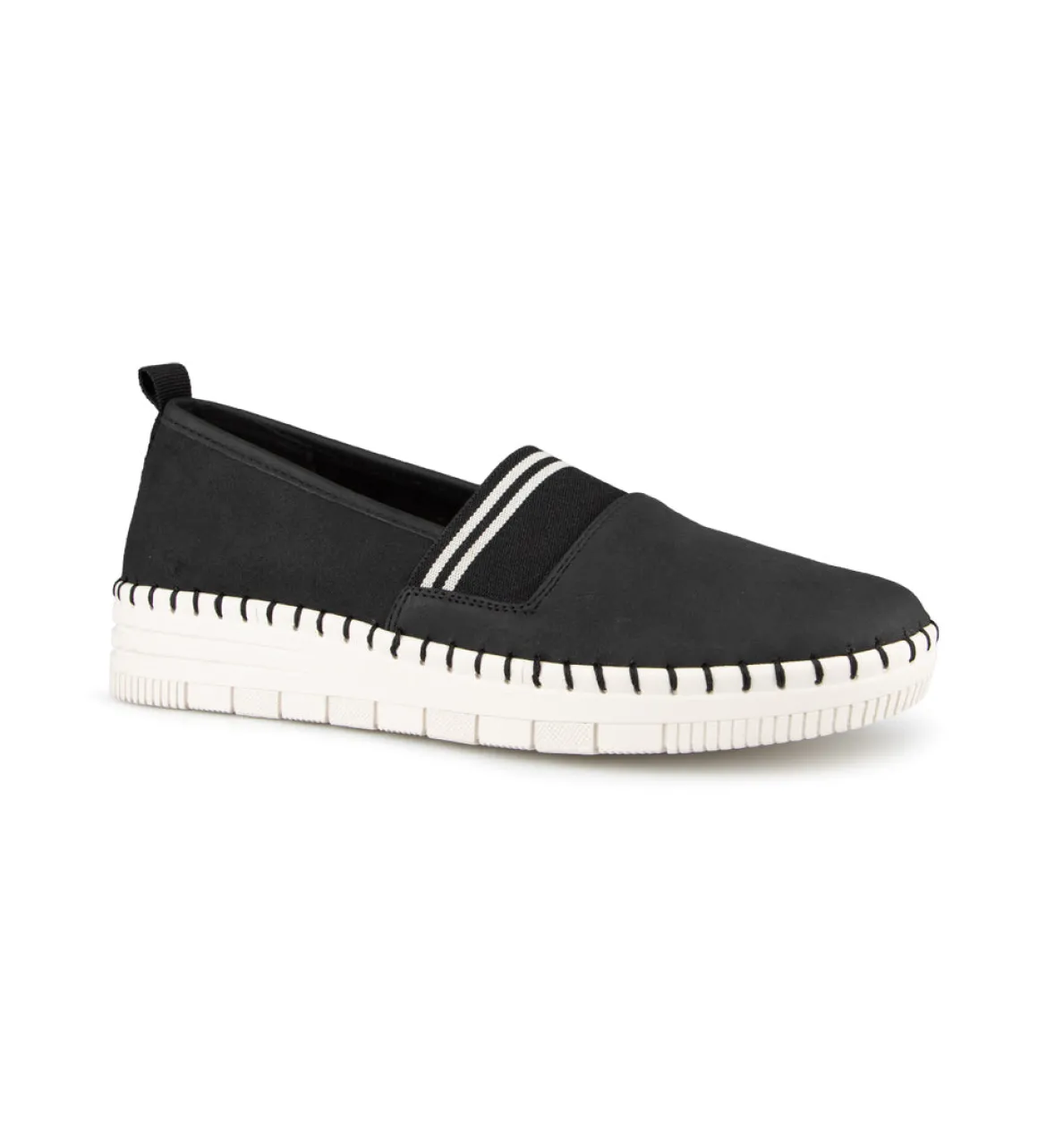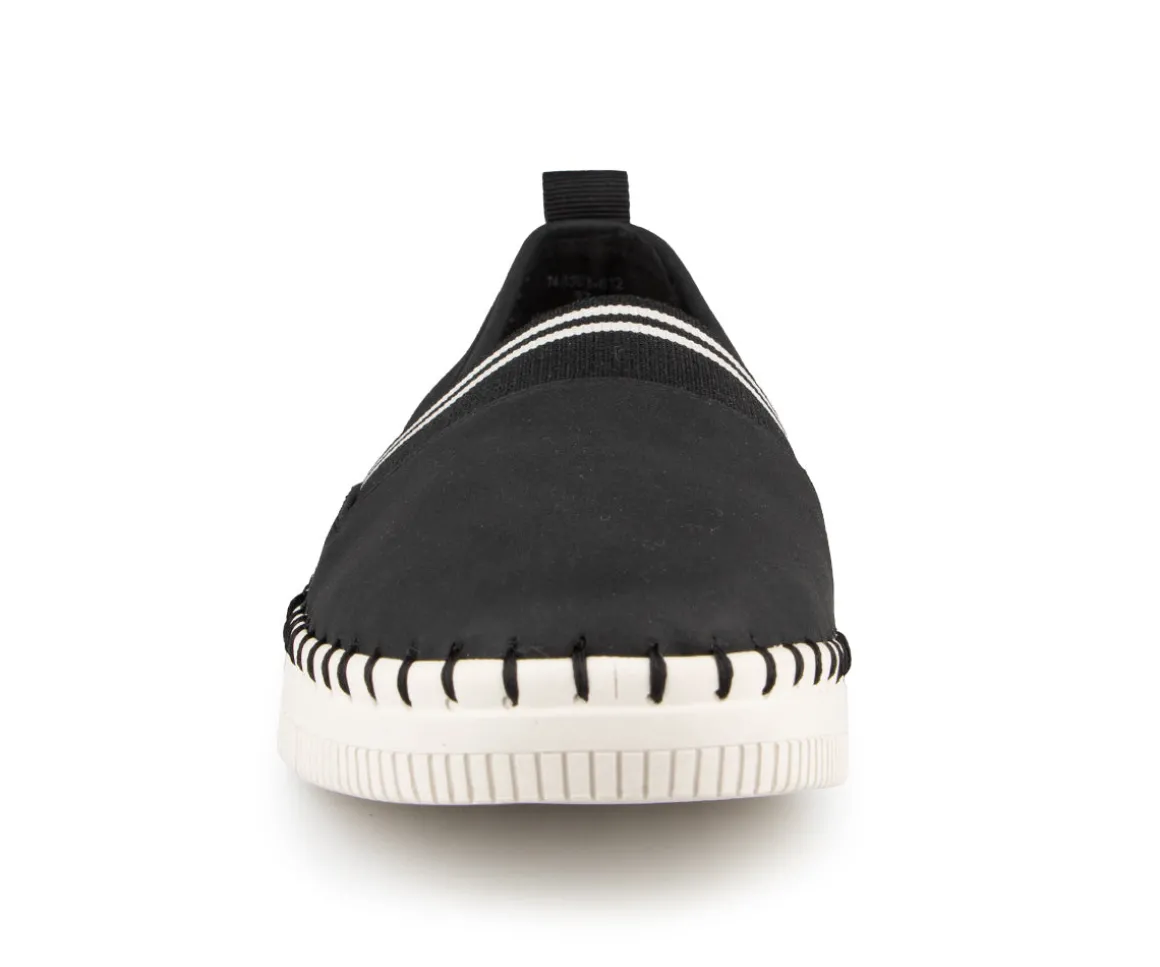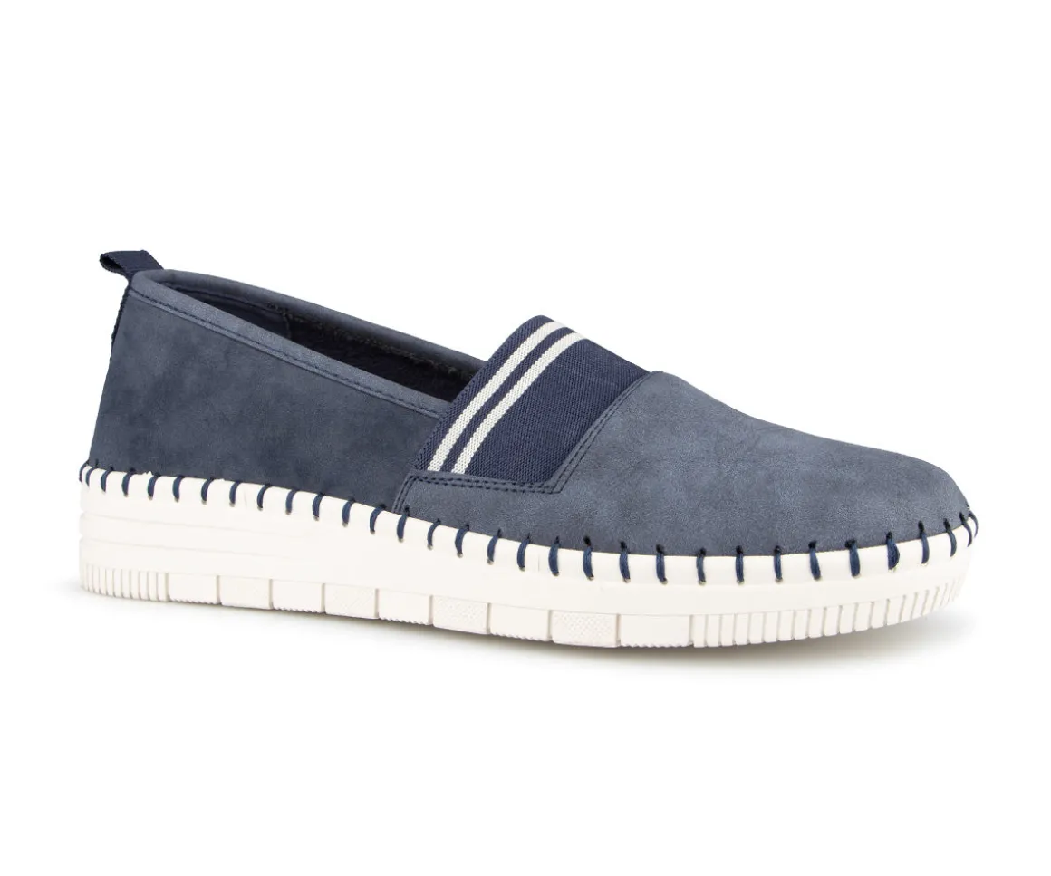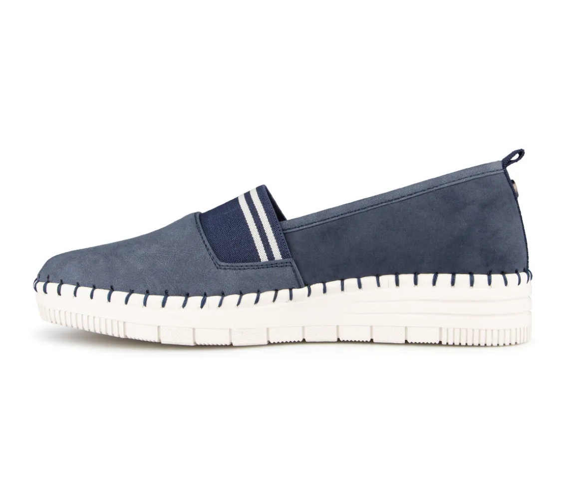 Chaussures de type flâneur Alberto pour femmes à empeigne élastique. Disponible dans deux couleurs (noir et bleu).