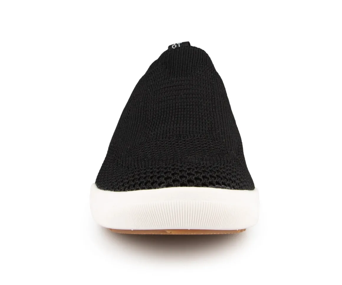 Chaussures de type flâneur Ultime confort pour femmes avec élastique en tissu maillé. Disponible dans deux couleurs (noir et rose).