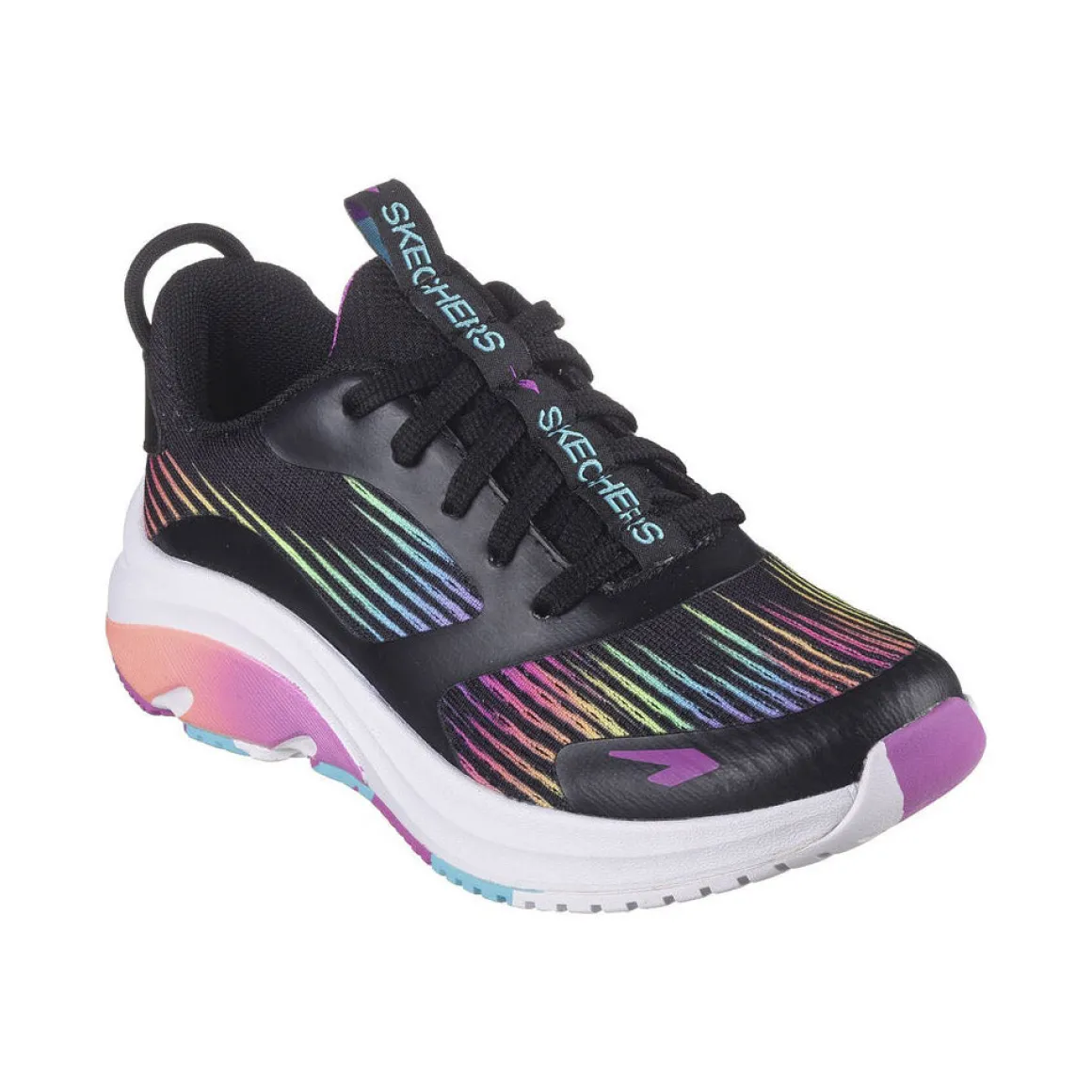Ces chaussures Skechers pour filles sont élégantes et colorées avec une semelle intercalaire confortable et rembourrée.