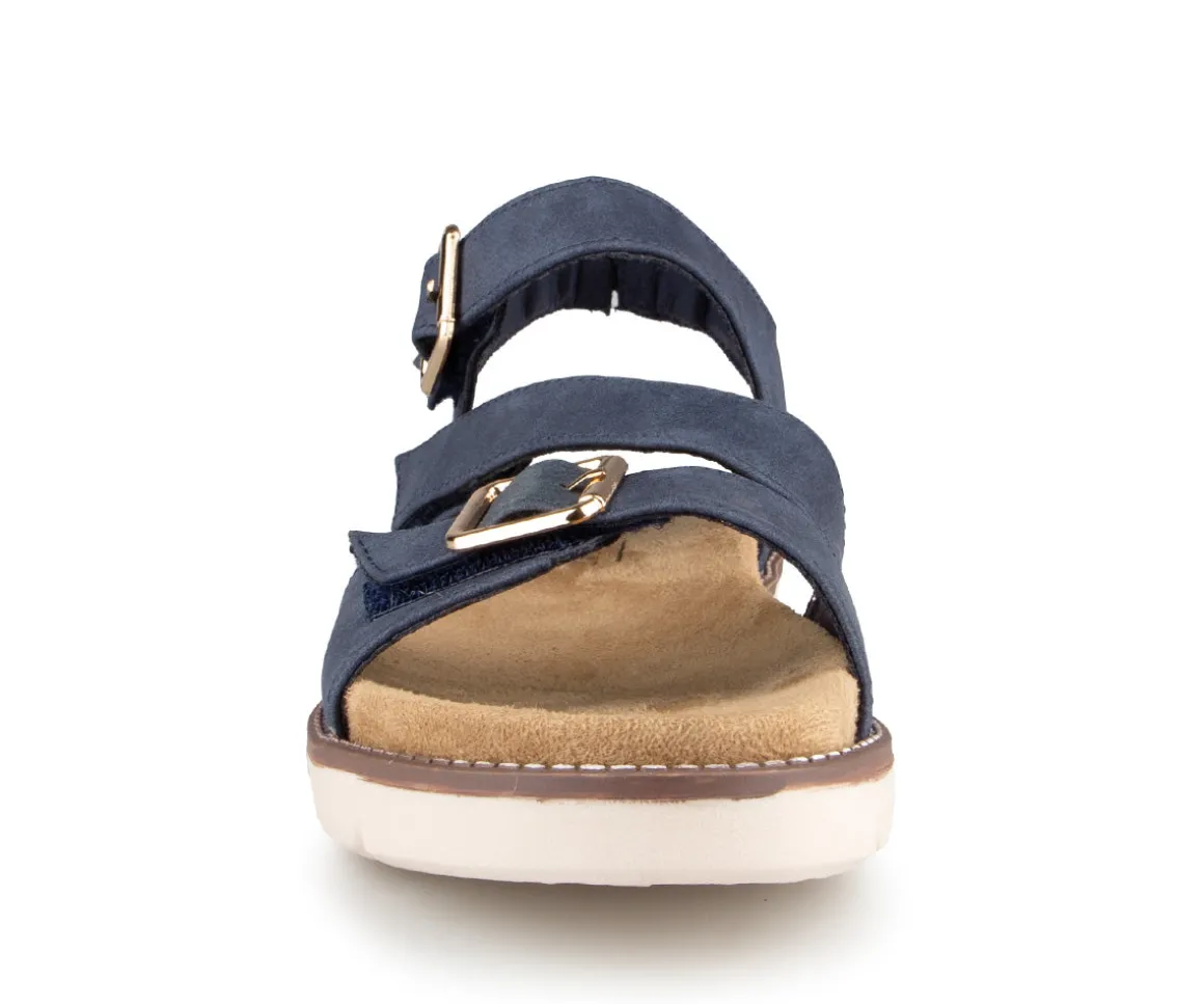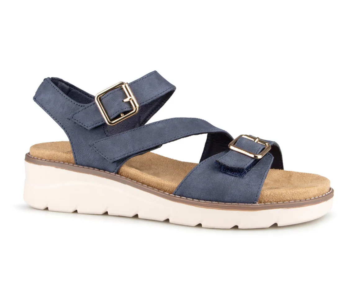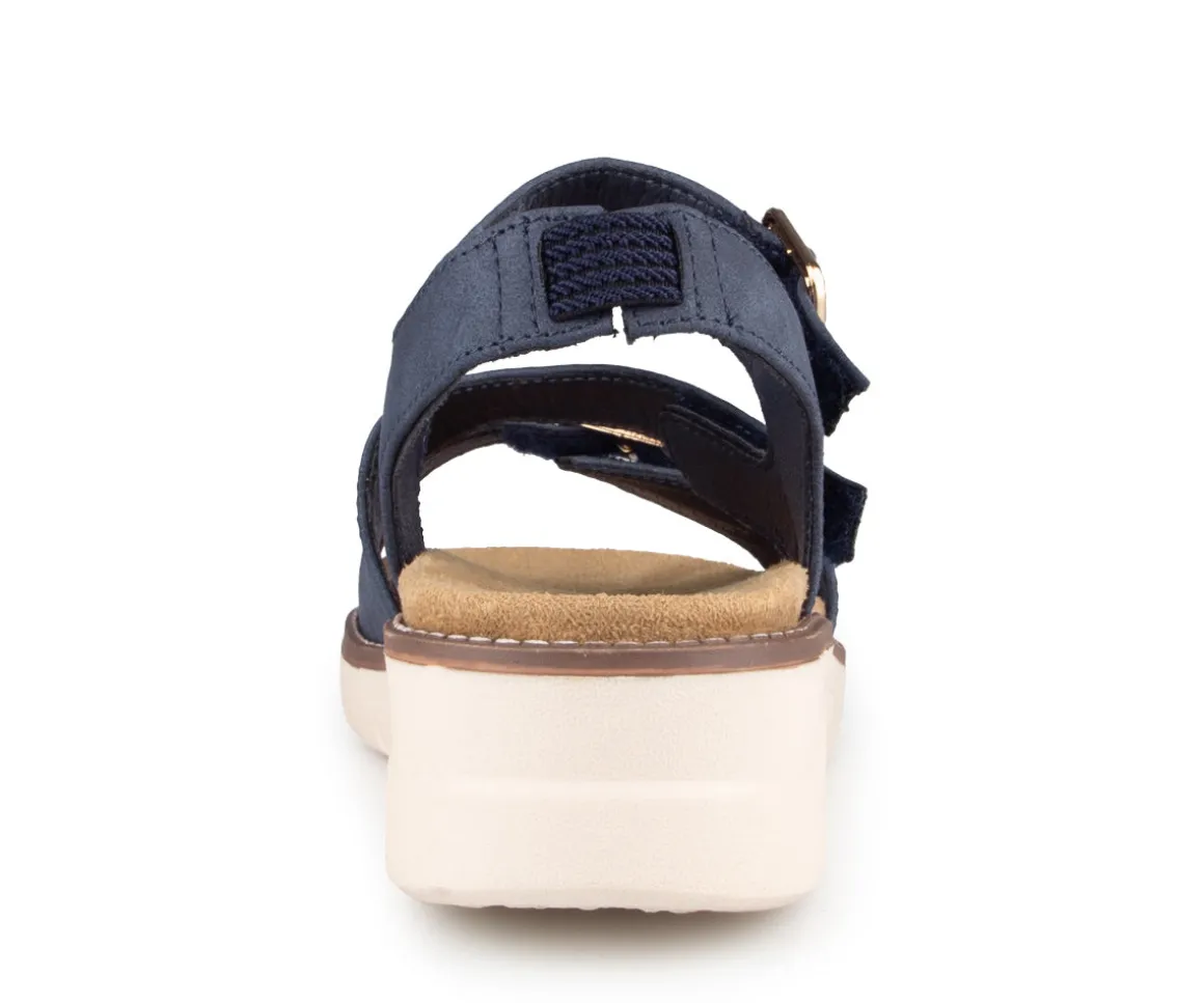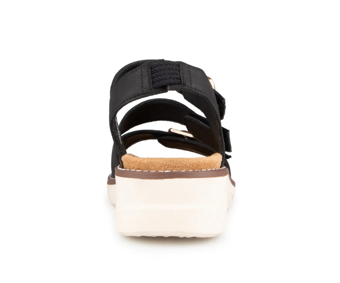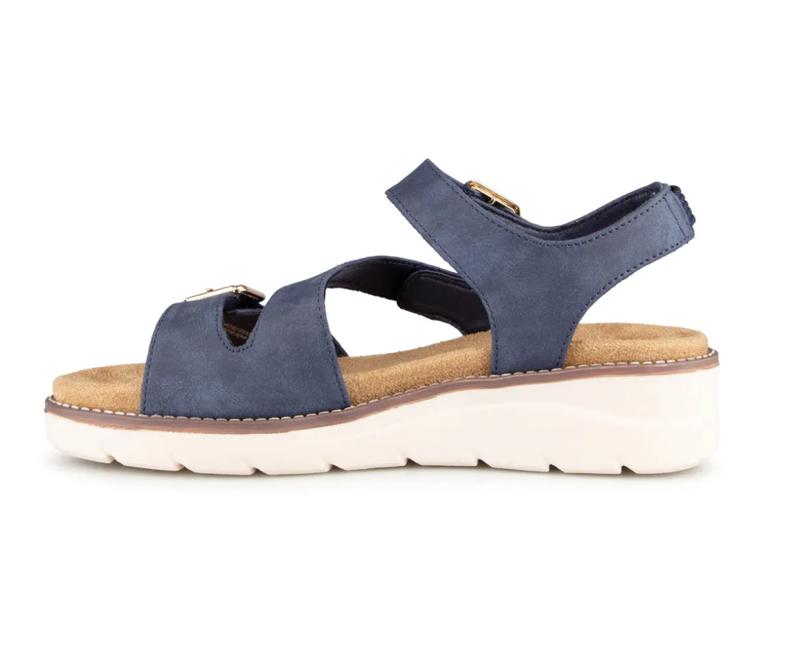 Sandale à talon compensé Ultime confort pour femme muni de 3 boucles à velcros sur l’empeigne et d’une semelle amovible. Cette sandale se marie à merveille avec une jupe plissée et un chemisier en soie pour un look chic et sophistiqué.