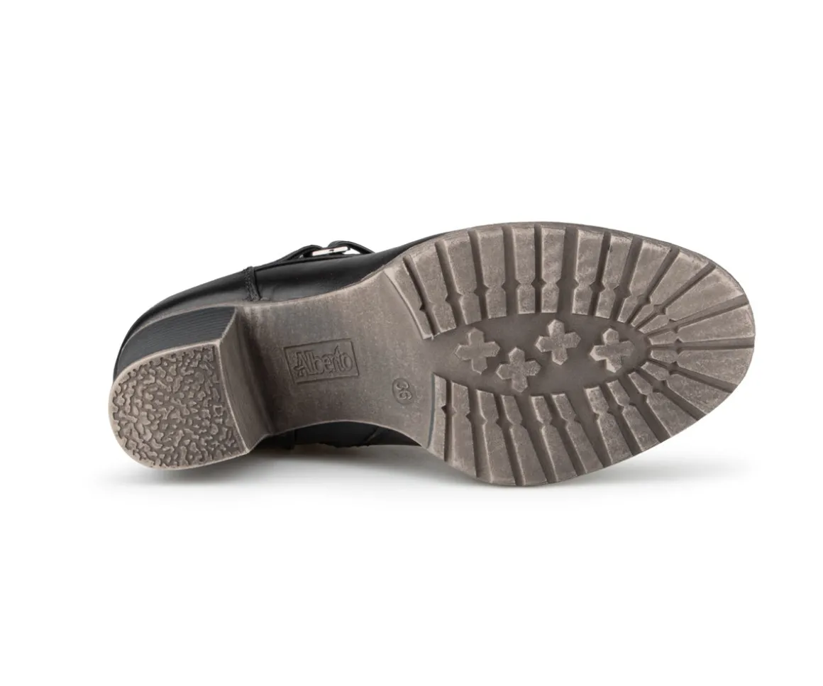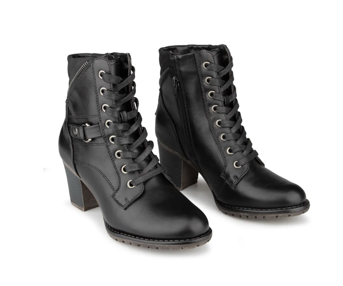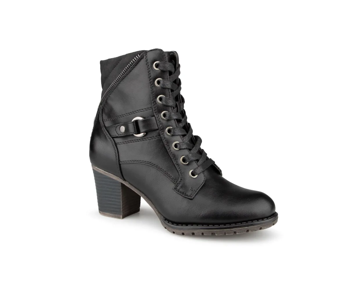 Ces bottillons courts à talon carré Alberto pour femmes allient style et praticité. Dotés d’une fermeture éclair intérieure YKK et de lacets, ils offrent une mise en place facile et un ajustement parfait. La doublure imprimée fleurs et l’empeigne en cuir synthétique ajoutent une touche d’élégance. Le confort est assuré par une semelle intérieure en feutre noir avec bon amortissement et une semelle extérieure TPR brossée pour une meilleure adhérence.