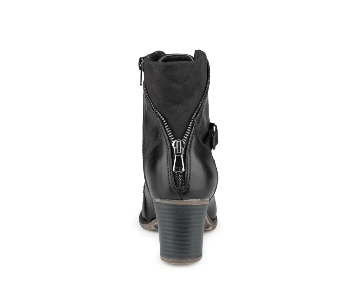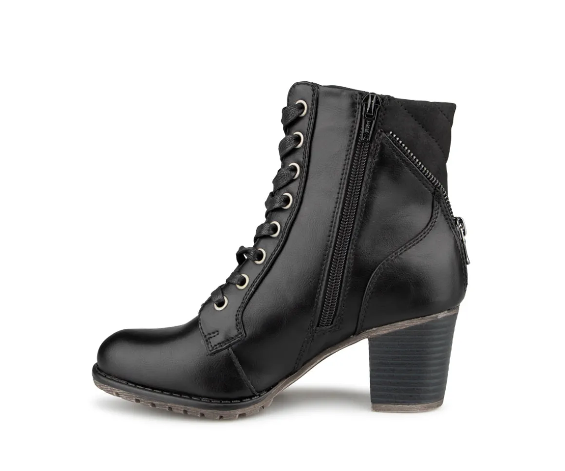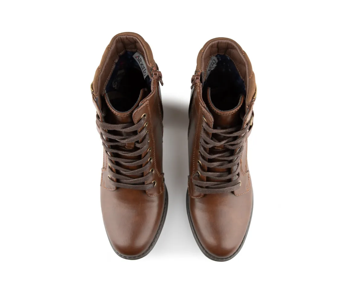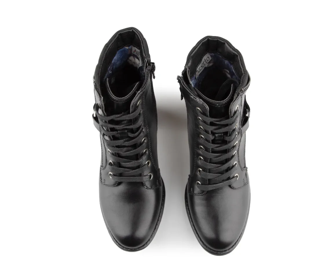 Ces bottillons courts à talon carré Alberto pour femmes allient style et praticité. Dotés d’une fermeture éclair intérieure YKK et de lacets, ils offrent une mise en place facile et un ajustement parfait. La doublure imprimée fleurs et l’empeigne en cuir synthétique ajoutent une touche d’élégance. Le confort est assuré par une semelle intérieure en feutre noir avec bon amortissement et une semelle extérieure TPR brossée pour une meilleure adhérence.
