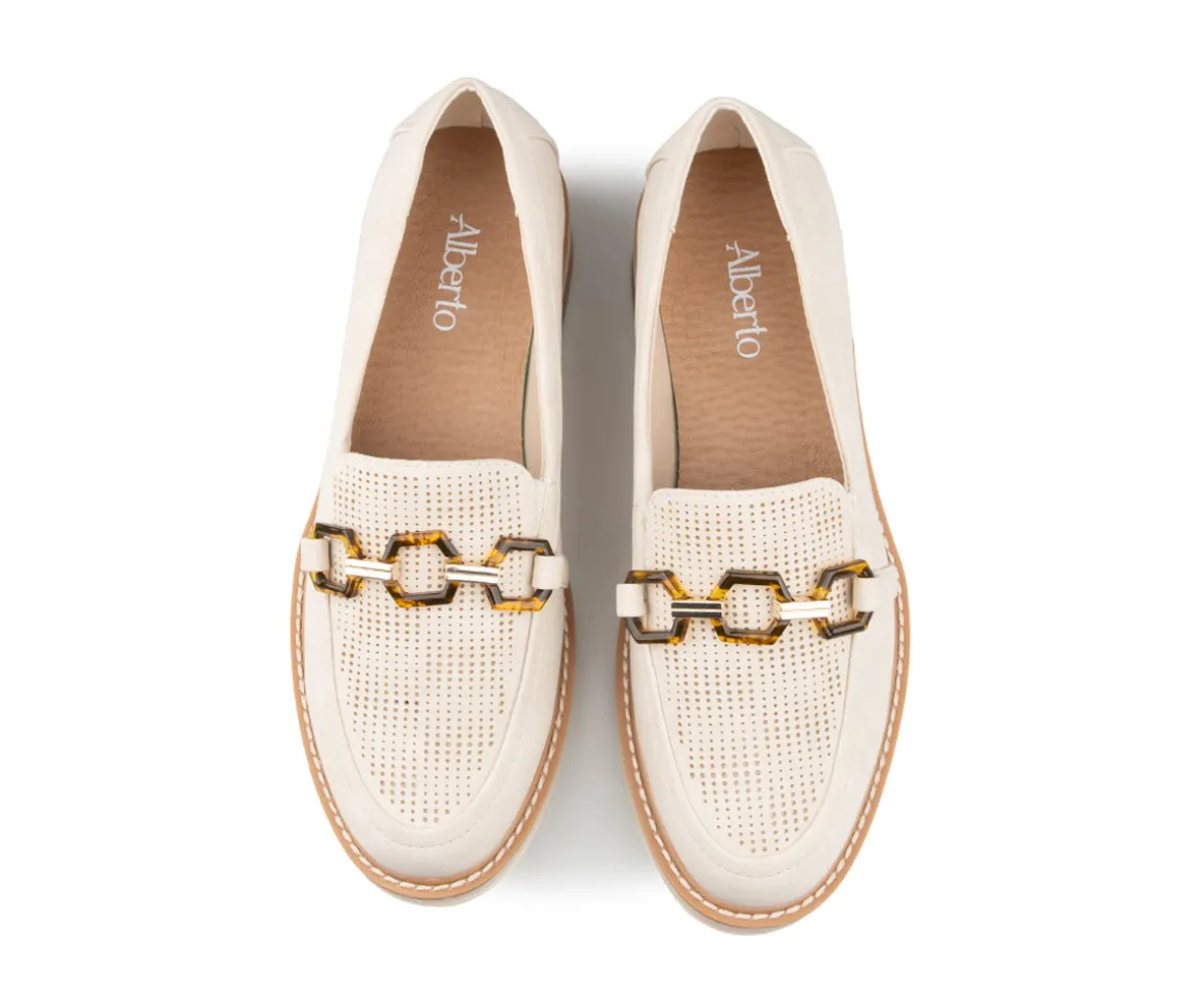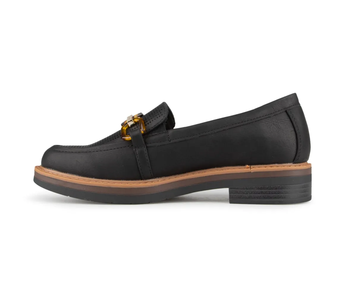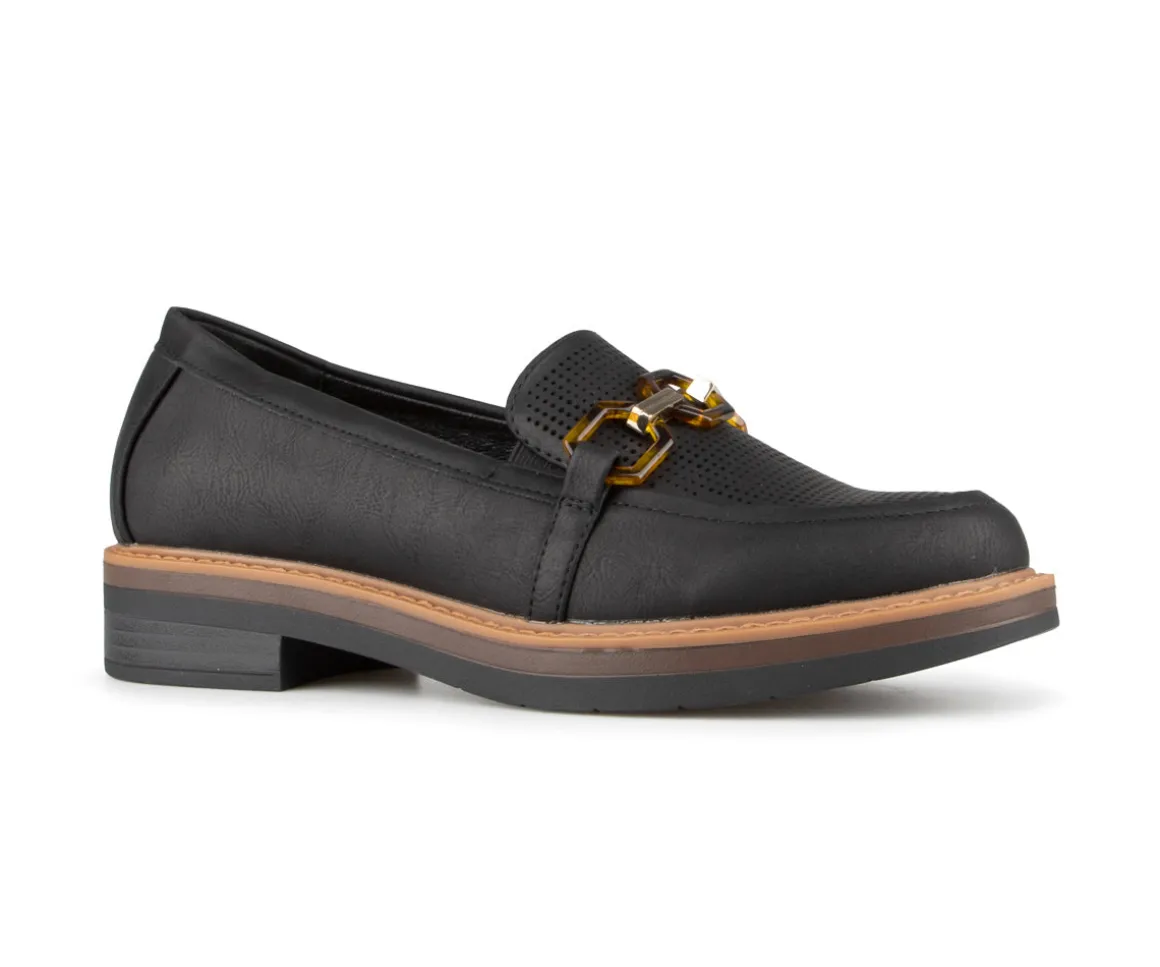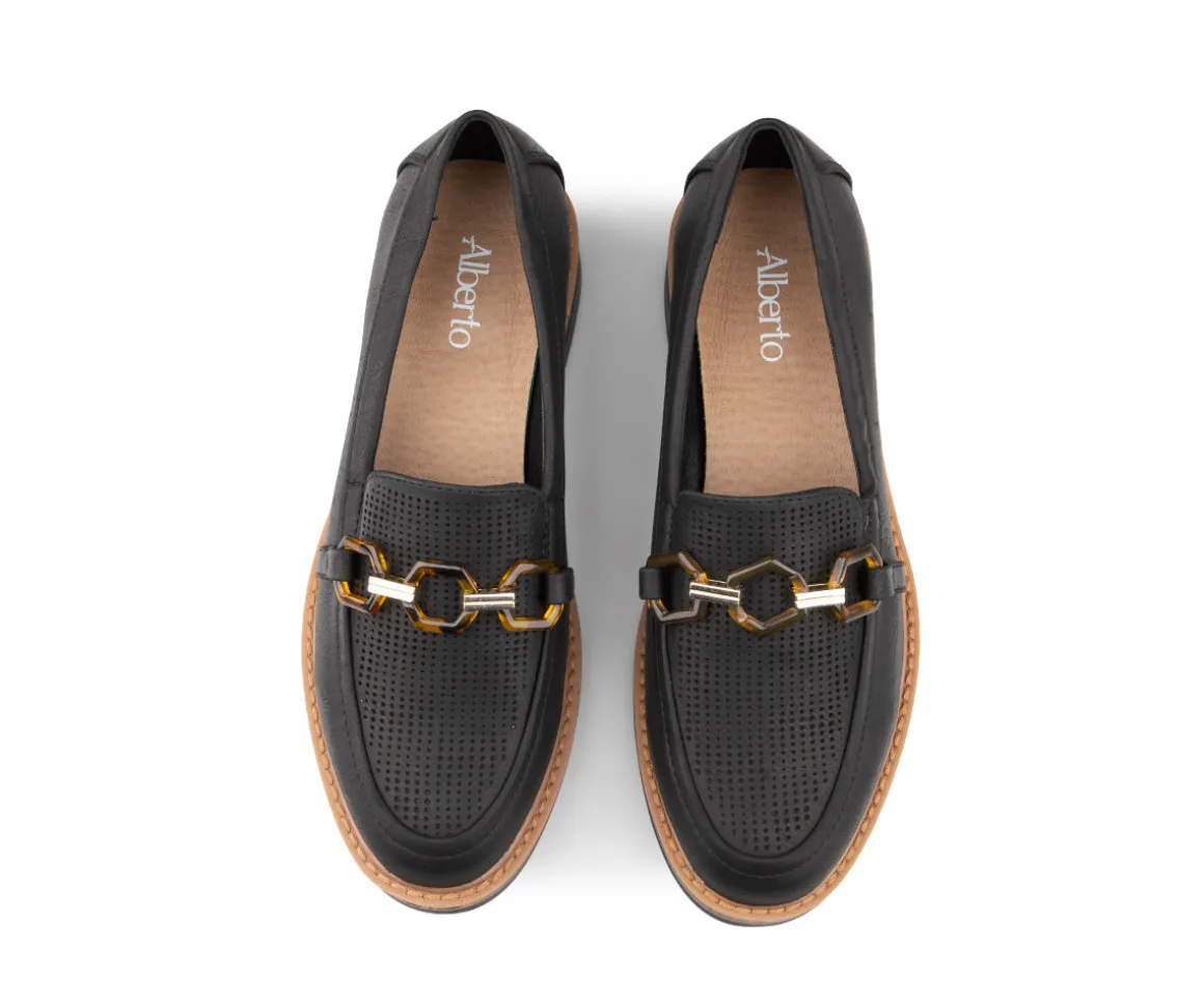 Ces flâneurs Alberto pour femmes marient élégance et confort, idéaux pour un usage quotidien. Une boucle décorative sur le dessus ajoute une touche chic, tandis que l’empeigne en cuir synthétique garantit une apparence moderne et durable. La semelle extérieure en TPR avec trépied tan offre une excellente adhérence, et le talon plat de 1 pouce assure un confort optimal tout au long de la journée.