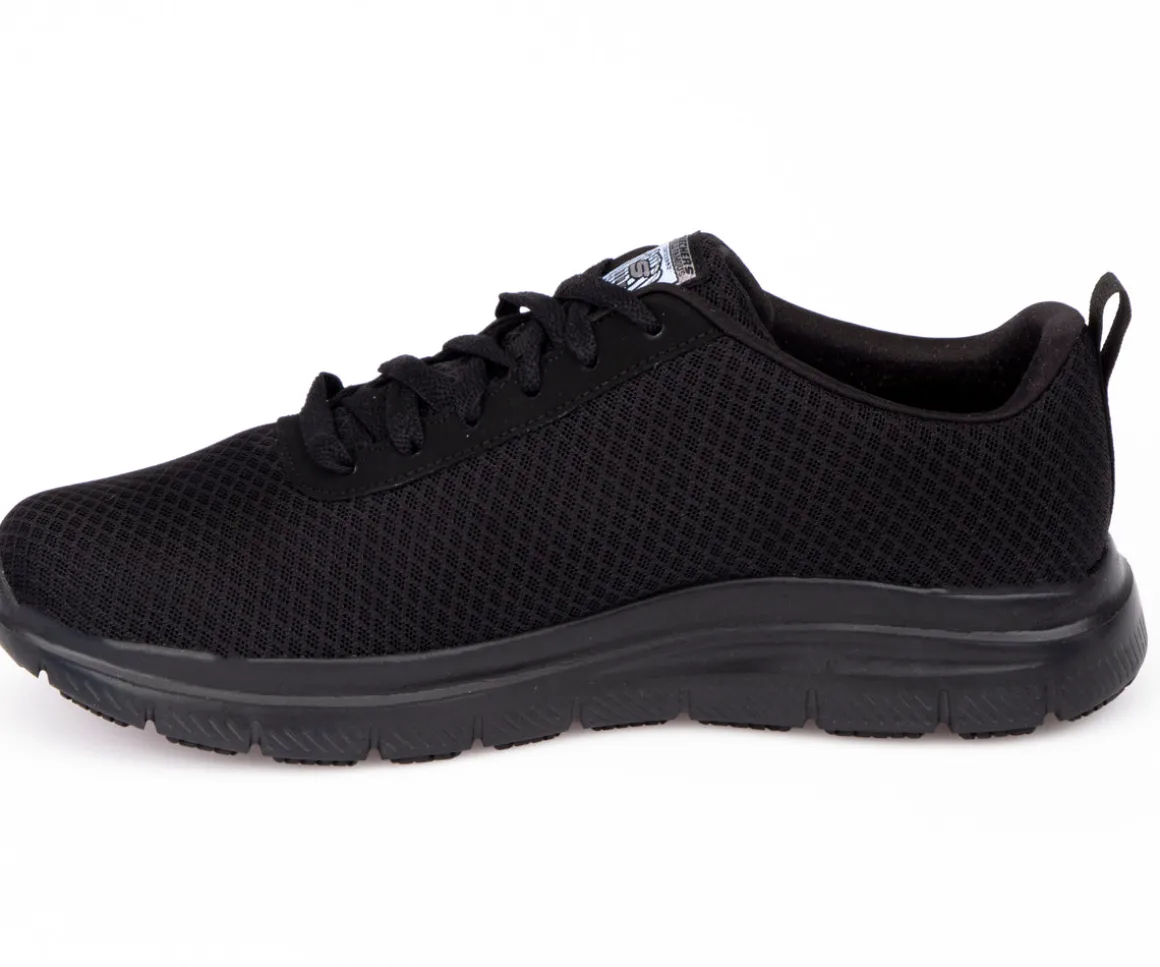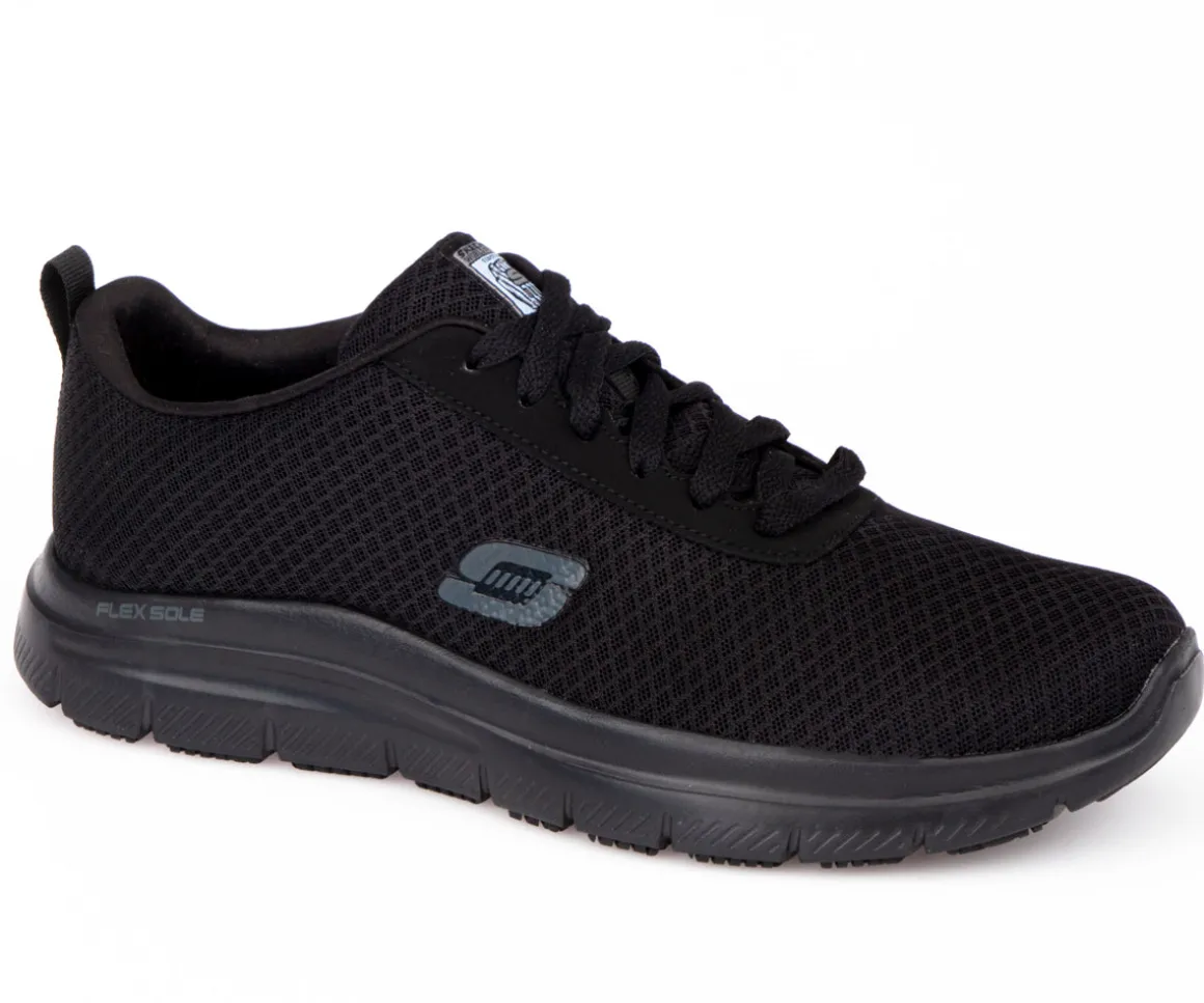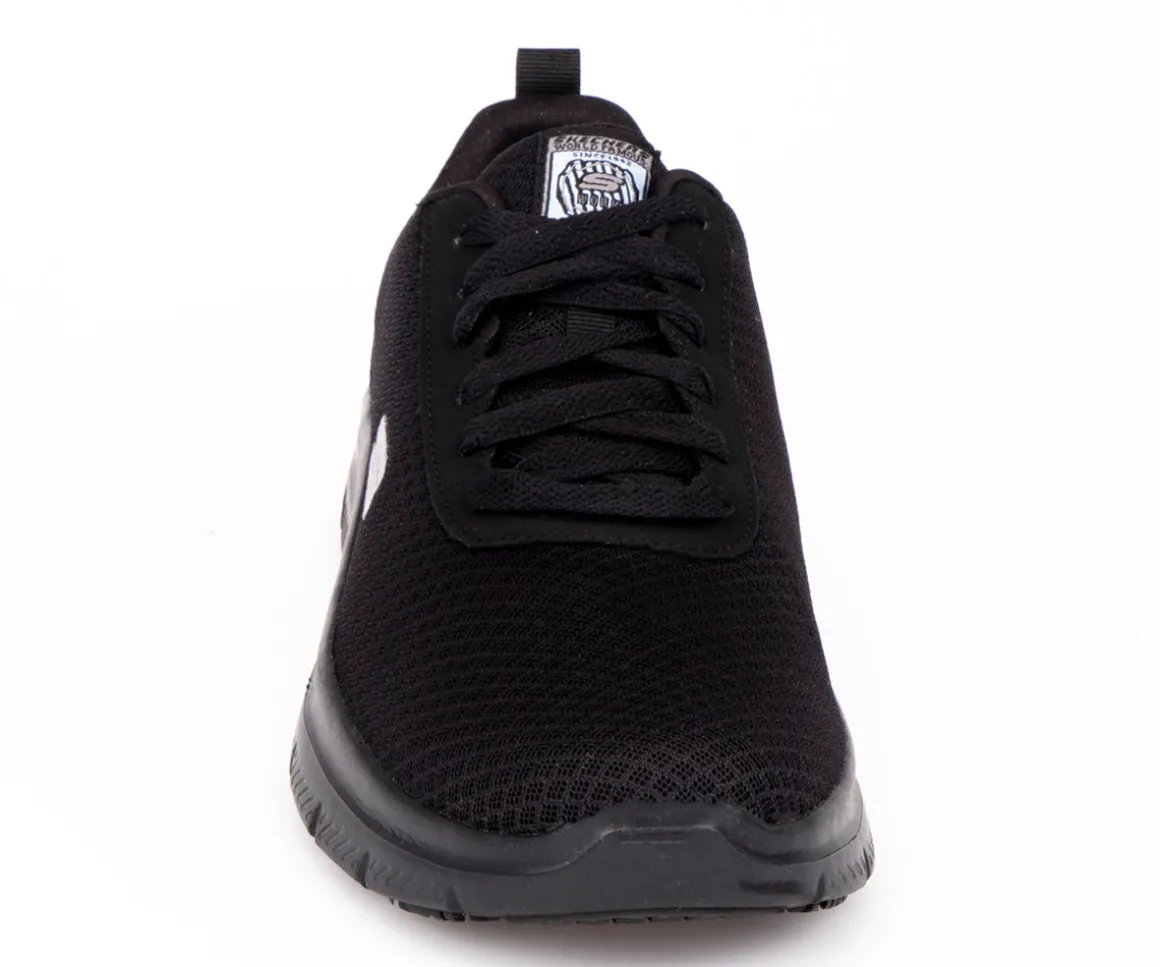 Chaussures Skechers Flex Advantage Bendon lacées en tricot mèche avec semelle antidérapante pour hommes. Disponible dans la couleur noire.
