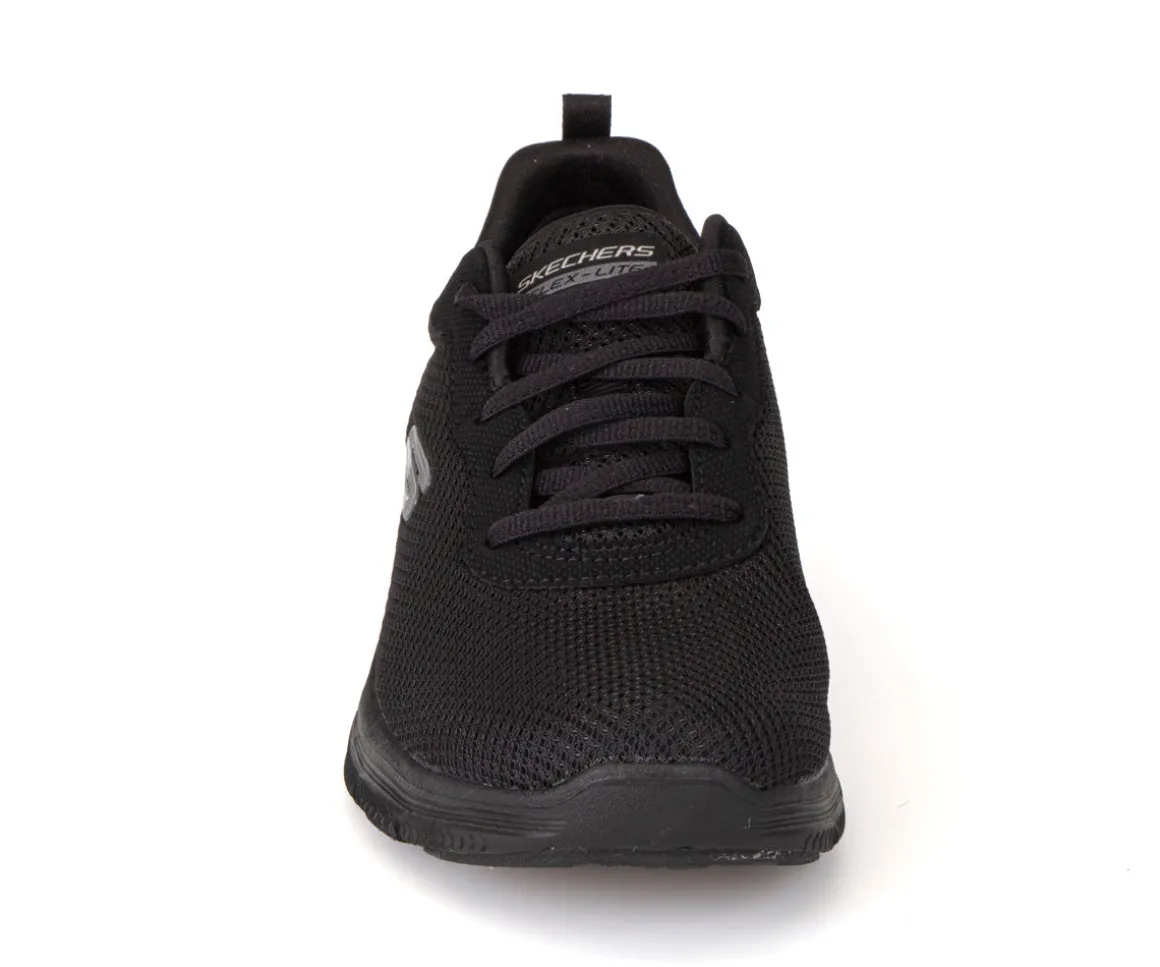 Ces chaussures athlétiques Flex Appeal 4.0 Skechers pour femmes sont lacées, avec une empeigne en tissu maillé et une semelle extérieure en EVA avec insertion de caoutchouc. Elles sont lavables en machine.