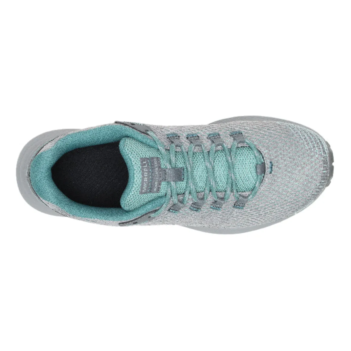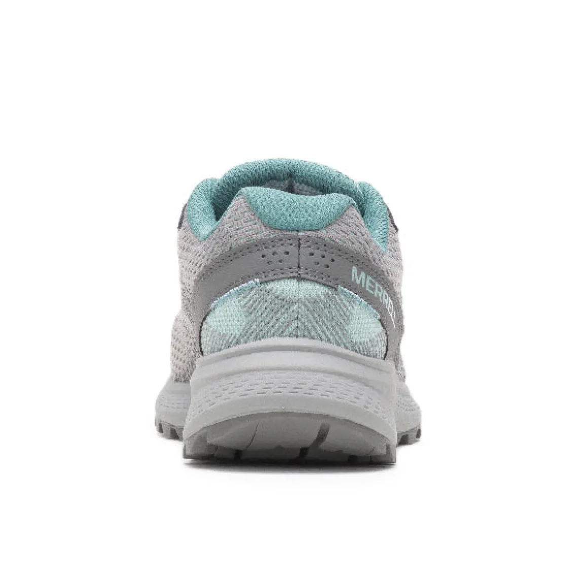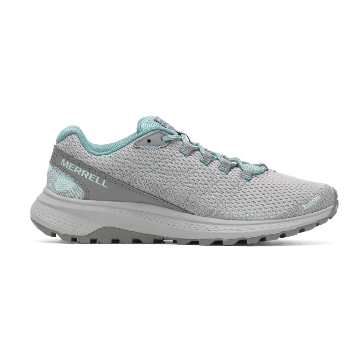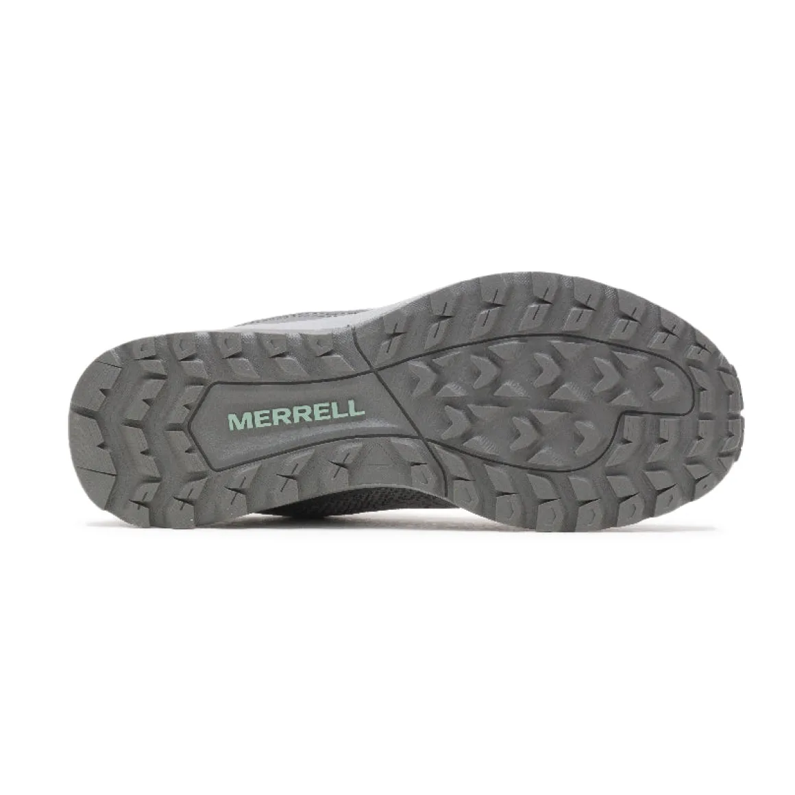 Chaussures de sentier Fly Strike de Merrell pour femmes, lacées avec dessus en tissu maillé et semelles extérieures en caoutchouc. Les chaussures de plein air parfaites pour la randonnée.