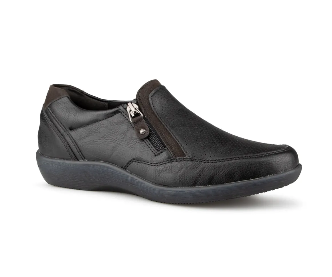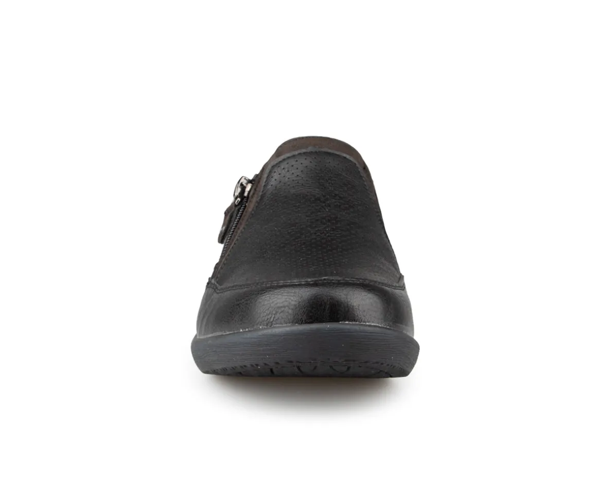 Ces chaussures Ultime Confort pour femmes, munies d’une empeigne élastique et d’une fermeture éclair, offrent un enfilage facile et rapide. Dotées d’un talon plat, elles sont parfaites pour celles qui recherchent un équilibre entre confort et style. Le modèle flâneur assure une allure décontractée, tandis que la semelle extérieure en TPR garantit une adhérence optimale et une grande durabilité. La largeur B offre un ajustement confortable pour toutes vos activités quotidiennes.