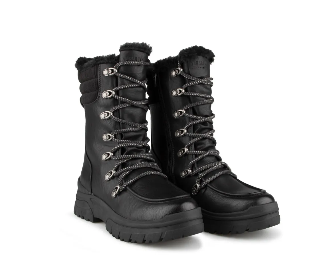 Ces bottes mi-mollet Alberto pour femmes combinent style et chaleur, avec un talon compensé pour un look élégant. Elles sont lacées et disposent d’une fermeture éclair intérieure, offrant un ajustement parfait.