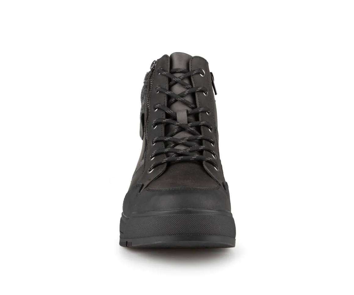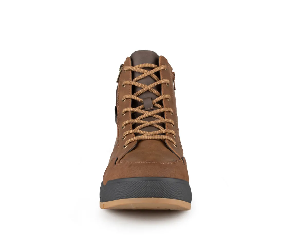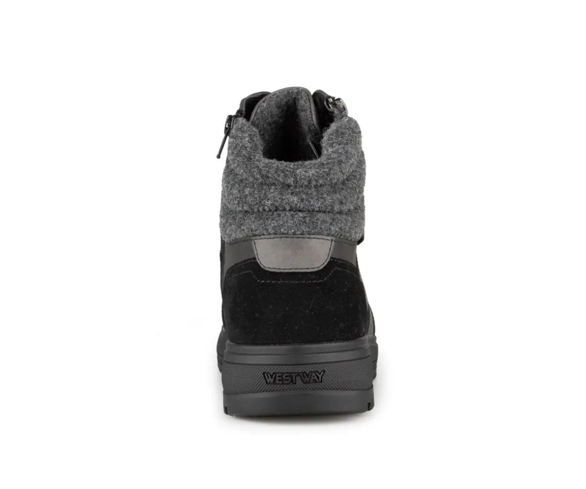 Ces bottillons West Way pour hommes sont conçus pour offrir confort et fonctionnalité. Ils sont lacés avec une fermeture éclair intérieure pour un enfilage facile. L’empeigne est en cuir synthétique, suède et feutre, assurant une combinaison de style et de robustesse. La doublure en feutre et la semelle intérieure amovible en feutre garantissent un confort accru, tandis que la semelle extérieure en TPR offre une bonne adhérence. La largeur D assure un ajustement confortable pour différents types de pieds.