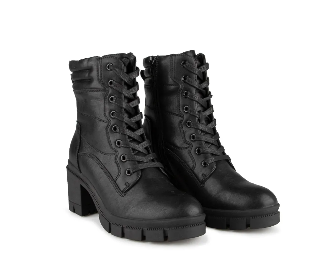 Ces bottillons courts Alberto pour femmes sont lacés avec une fermeture éclair intérieure pour un enfilage facile. L’empeigne en cuir synthétique et le talon carré ajoutent une touche élégante, tandis que la largeur B assure un ajustement confortable. La semelle extérieure en TPR assure une bonne adhérence, tandis que la semelle intérieure en feutre avec mousse à mémoire offre un excellent amortissement.