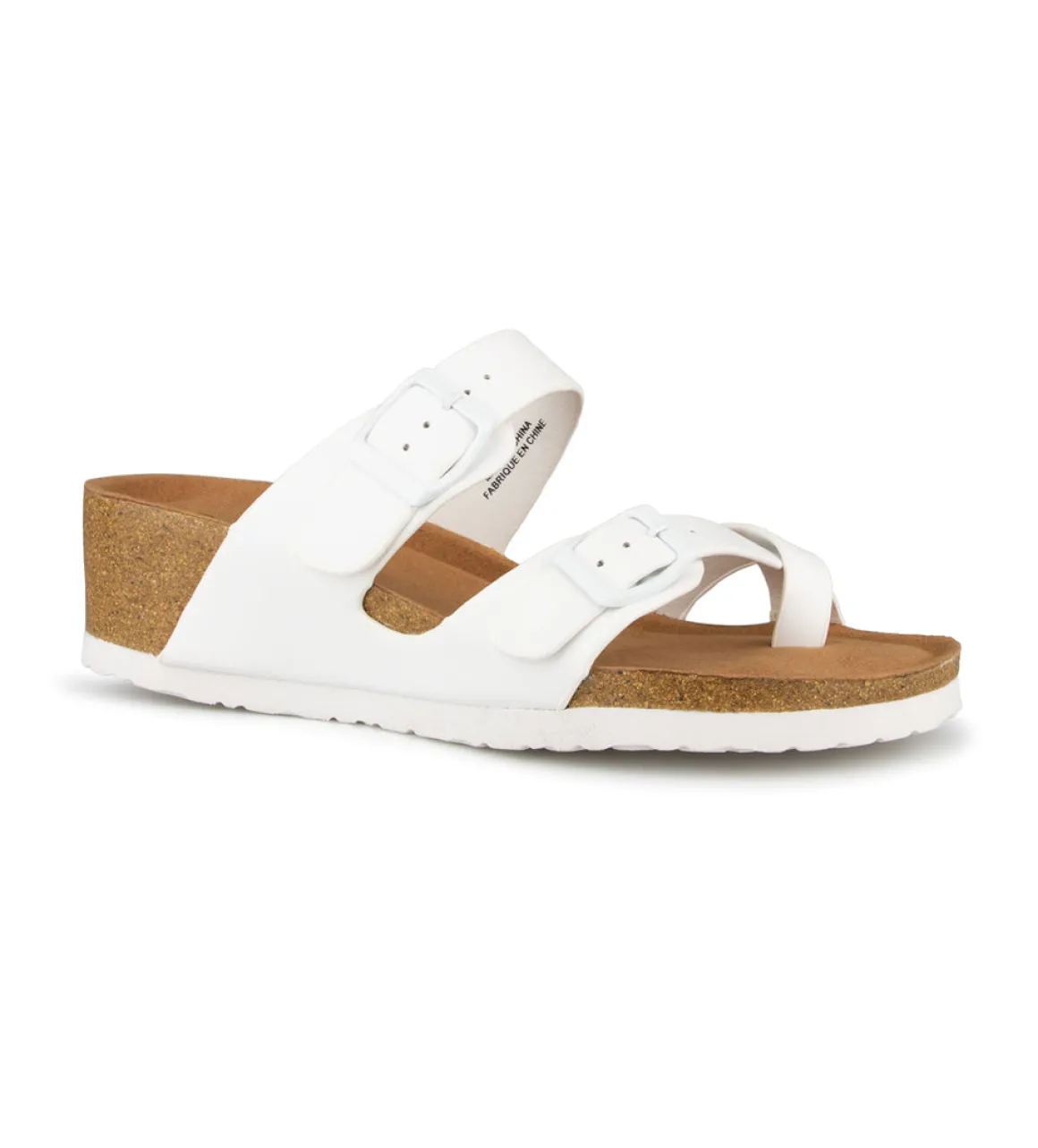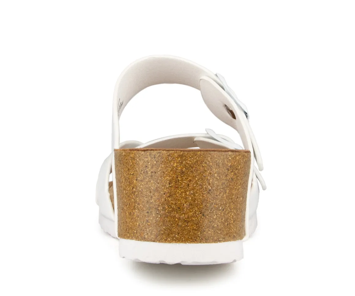 Sandale mule Alberto pour femme à talon compensé. Elle a une courroie à l’orteil ainsi que 2 boucles ajustables. Ces sandales sont parfaites pour les journées de travail en été.