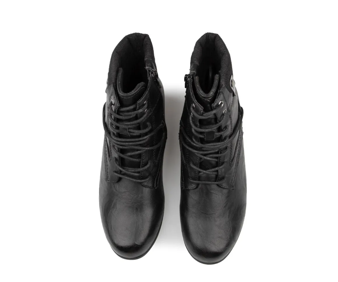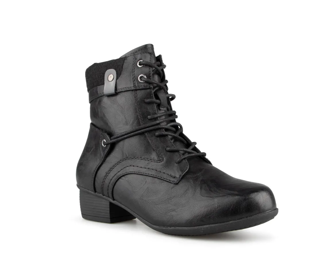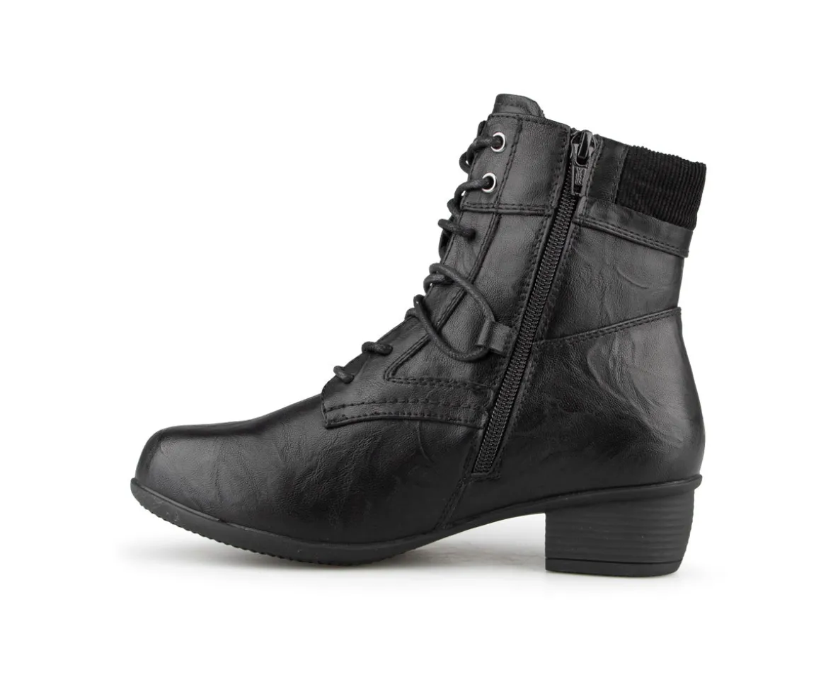 Ces bottillons courts Ultime Confort pour femmes combinent style et praticité. Ils sont munis de lacets ainsi que d’une fermeture éclair intérieure YKK pour un enfilage facile. Conçus en cuir synthétique, ces bottillons sont dotés d’un talon carré pour plus de stabilité et d’une petite doublure en imitation de fourrure courte pour un confort supplémentaire. La semelle extérieure en TPR assure une durabilité accrue et une bonne adhérence.
