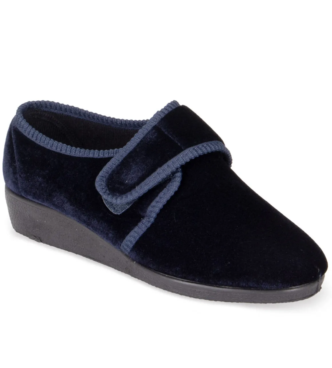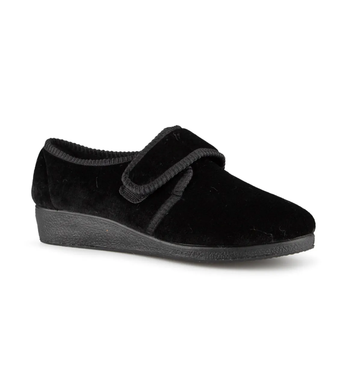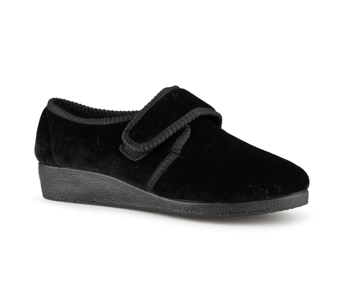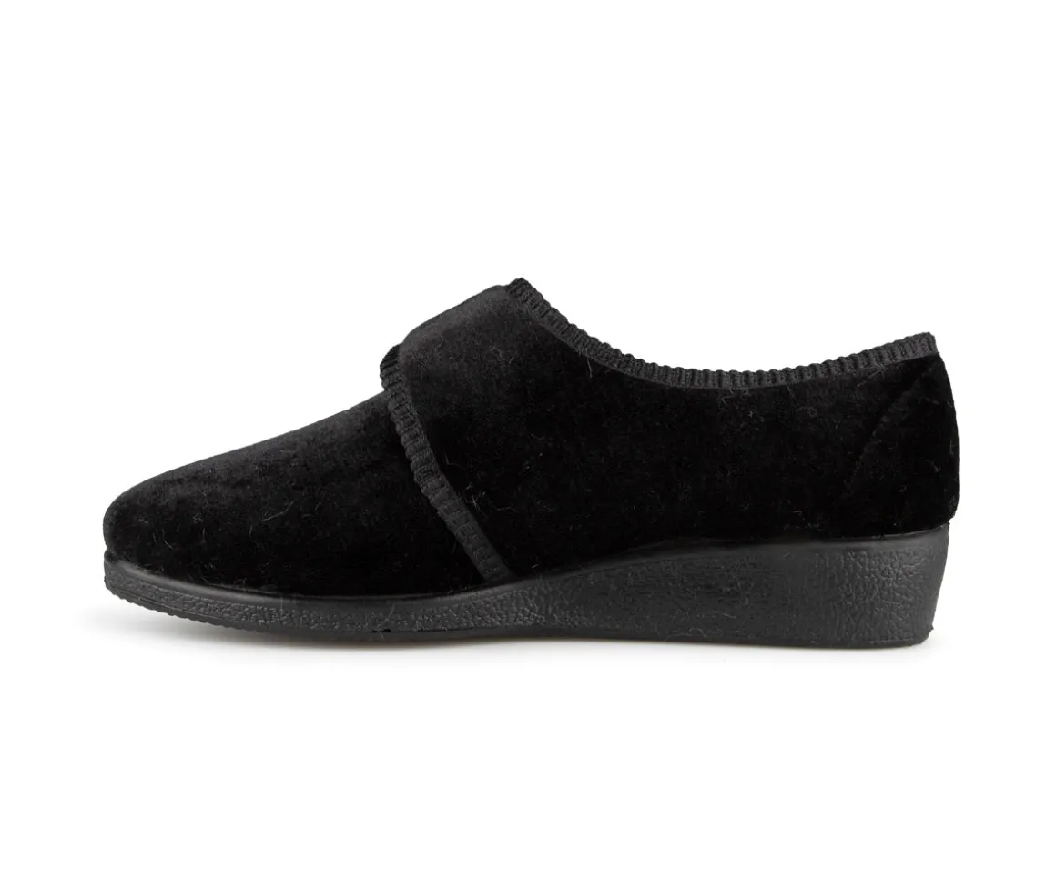 Les pantoufles pour femmes Comfortcare à fermeture velcro sont dotées d’un talon compensé, offrant ainsi un confort supplémentaire lors des moments de détente à la maison.