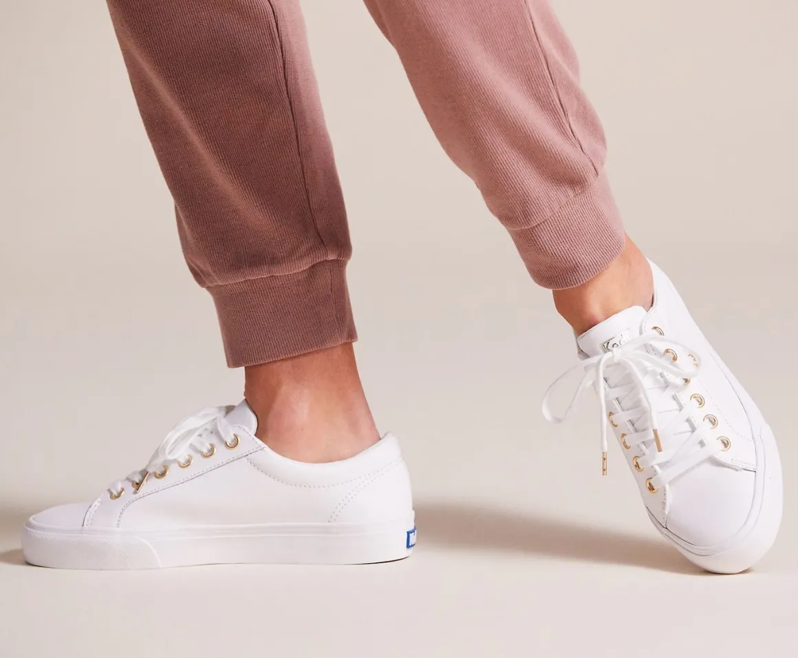 Chaussures minimalistes Keds pour femmes aux accents sportifs nostalgiques. Elles s’associent parfaitement avec tous les types de jeans et apportent une touche décontractée aux pièces plus habillées, les rendant ainsi adaptées à un usage quotidien. Elles permettent d’élargir facilement votre garde-robe en un seul geste.