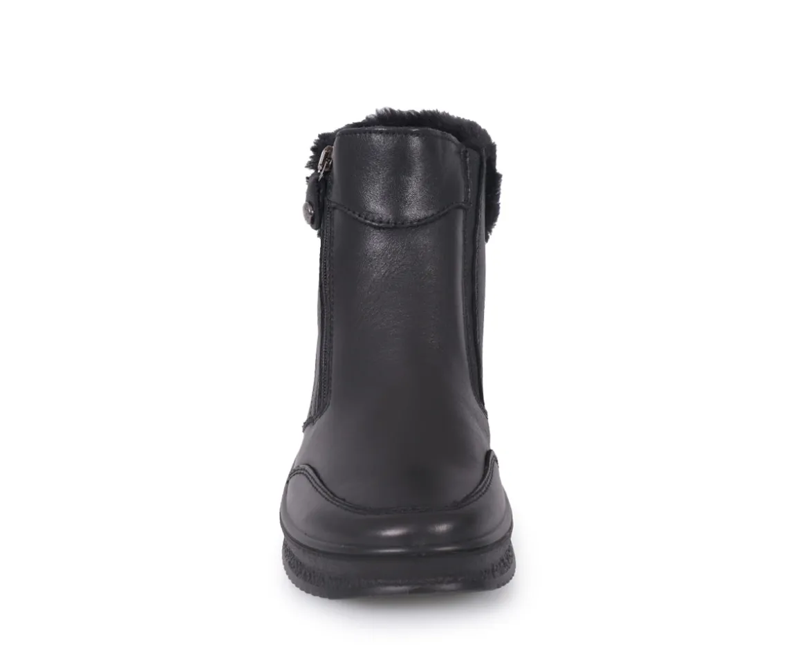 Ces bottes d’hiver Imac pour femmes allient confort et style grâce à leur fermeture éclair extérieure et leur élastique qui facilitent l’entrée du pied. Le talon compensé offre une élévation subtile et confortable, tandis que la semelle extérieure en TPR assure une bonne adhérence. L’empeigne en cuir, agrémentée d’un collet en fourrure synthétique décorative, apporte une touche élégante tout en gardant vos pieds au chaud.