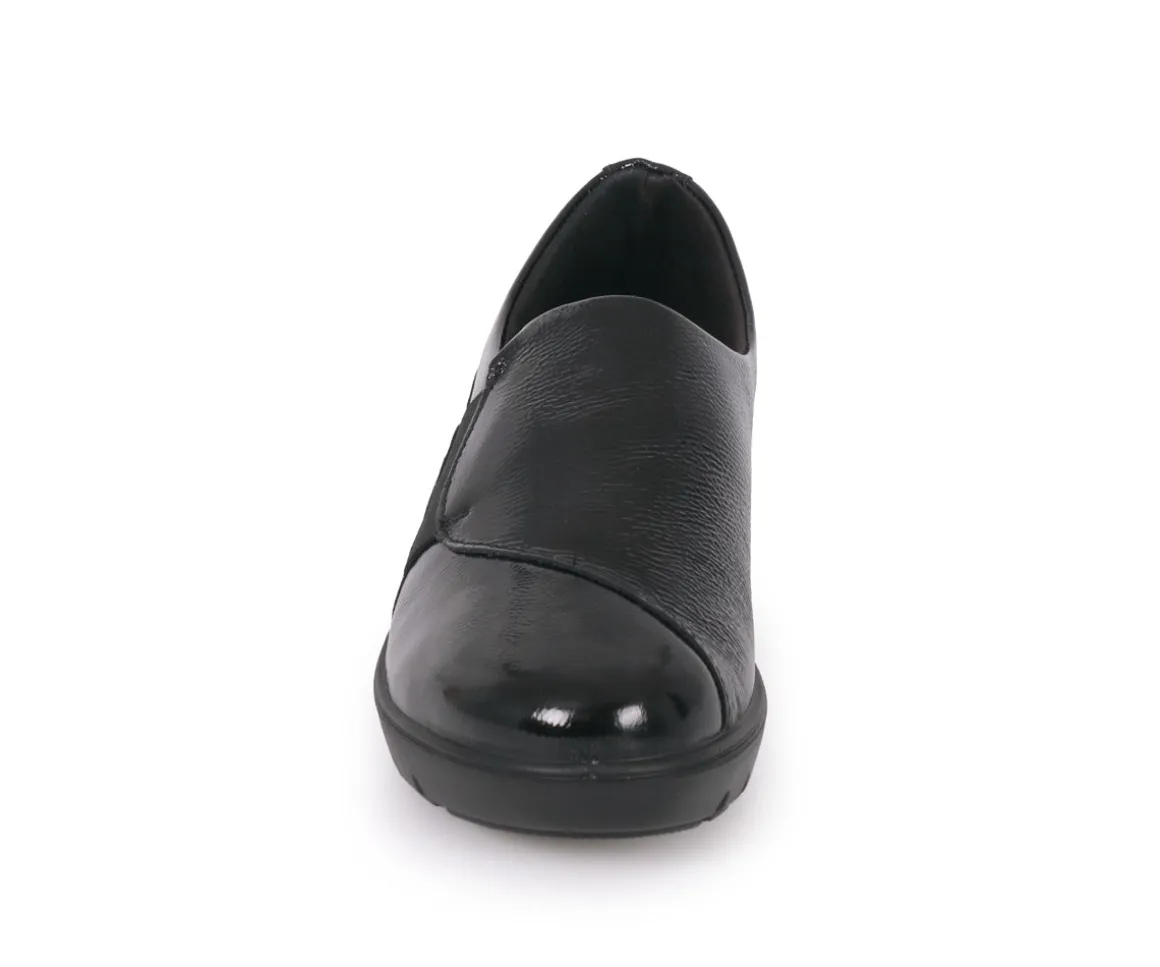 Ces flâneurs Imac en cuir vernis pour femmes combinent élégance et confort avec leur empeigne élastique et leur talon compensé. Idéals pour un usage quotidien, ils offrent un style raffiné tout en assurant un ajustement souple et un soutien optimal.
