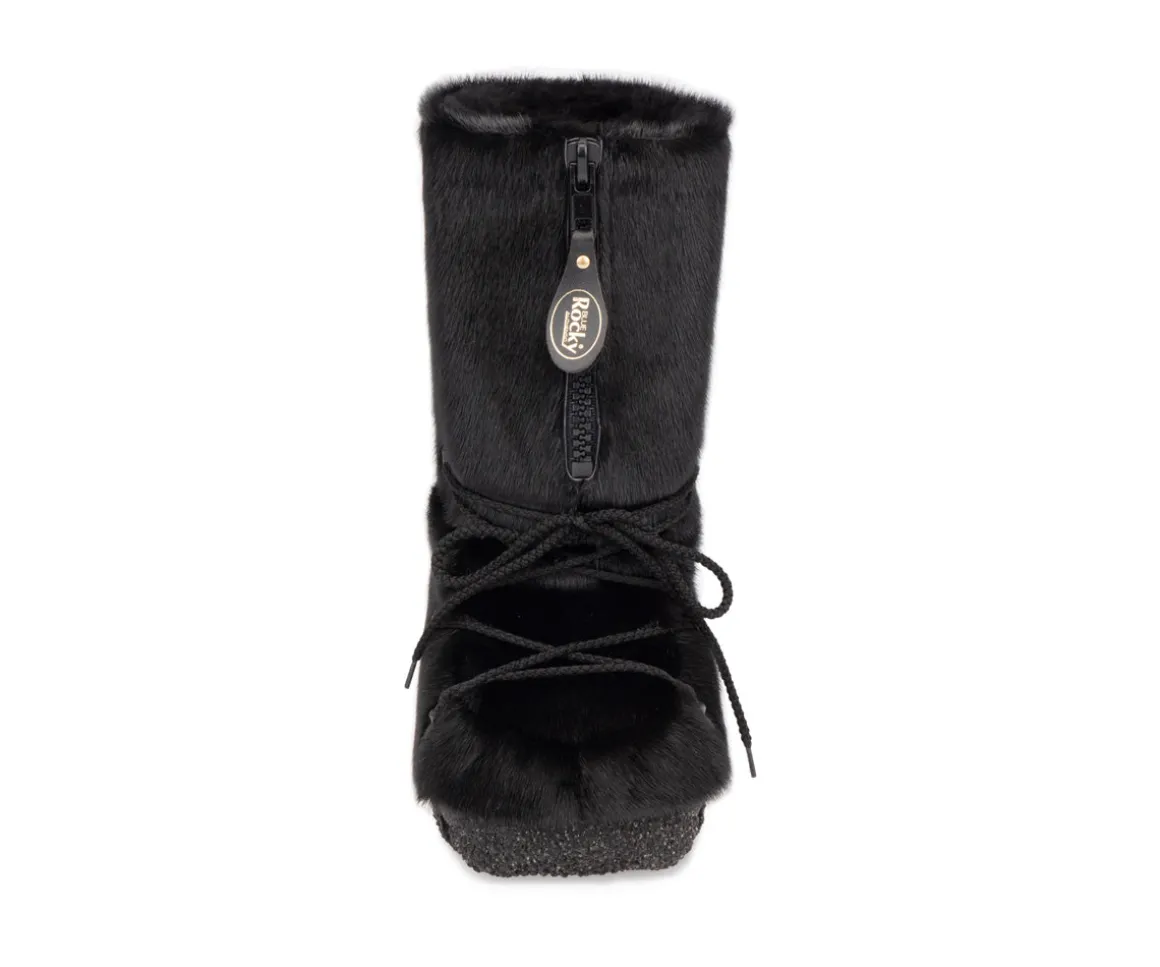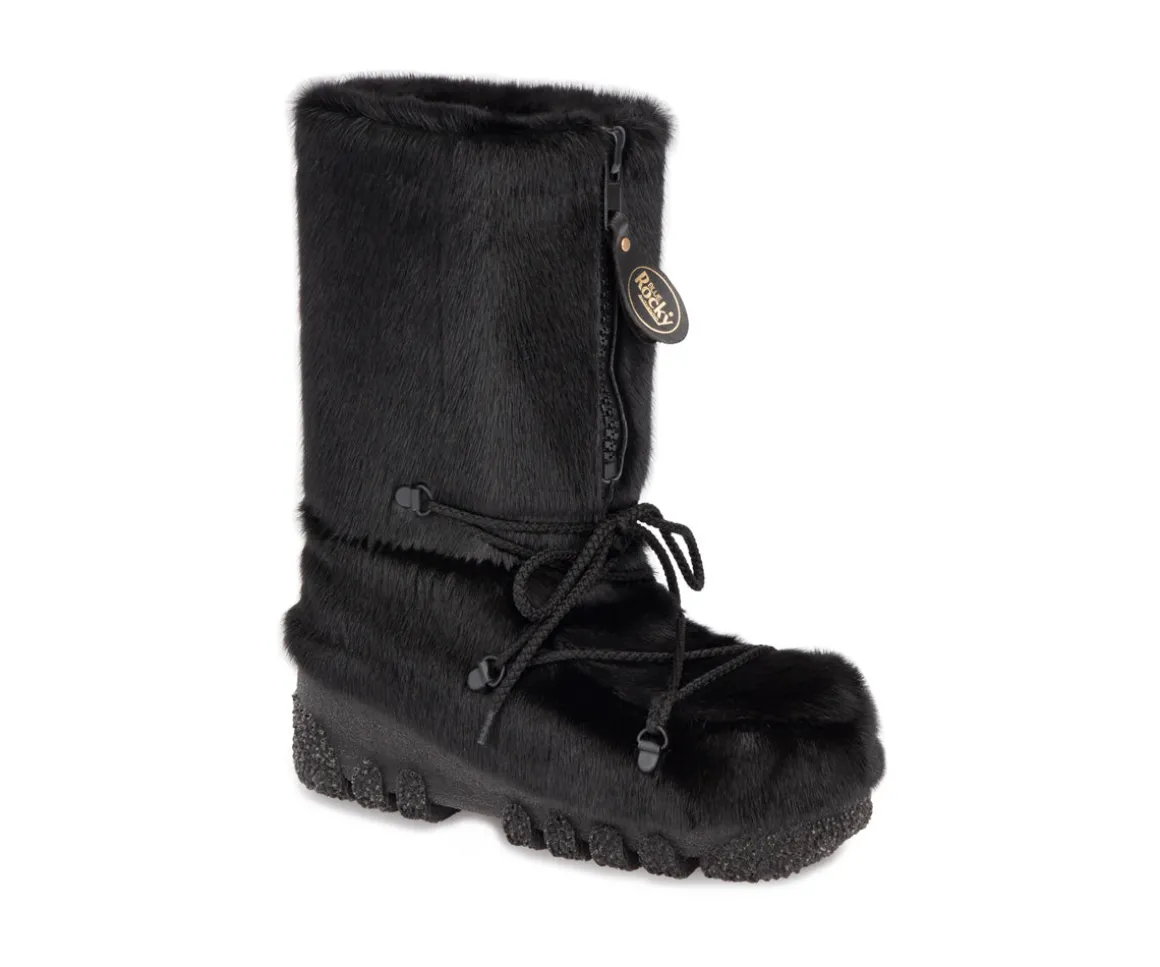 Ces bottes de motoneige Blue Rocky pour hommes sont en fourrure de loup marin entièrement fabriquée au Canada. Conçue pour vous tenir bien au chaud lors des grands froids canadiens Fermeture éclair à l’avant.