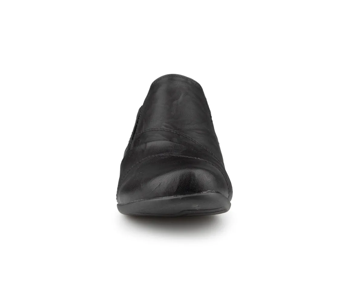 Ces chaussures à talon carré Ultime Confort pour femmes allient élégance et confort. Elles sont dotées d’une empeigne en cuir synthétique avec élastique, offrant une tenue sécurisée. La doublure en microfibre noire et la semelle intérieure avec bon amortissement assurent un confort optimal tout au long de la journée. La semelle extérieure en TPR garantit durabilité et adhérence. Conçues avec une largeur B, elles s’adaptent à la majorité des pieds.