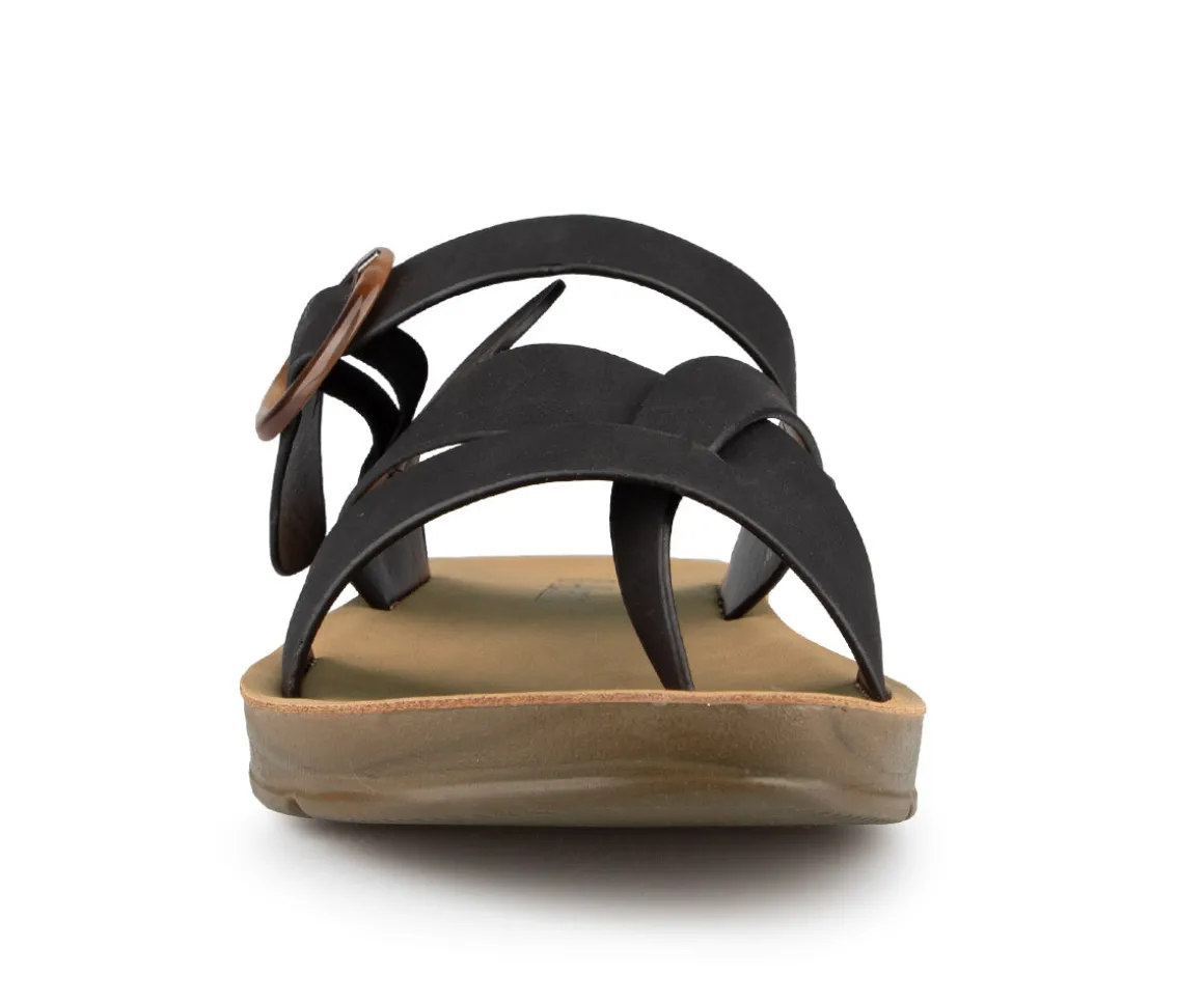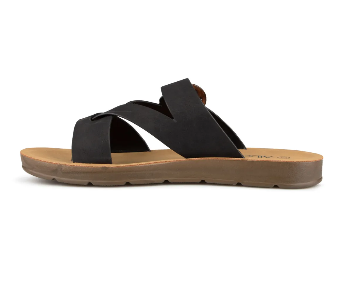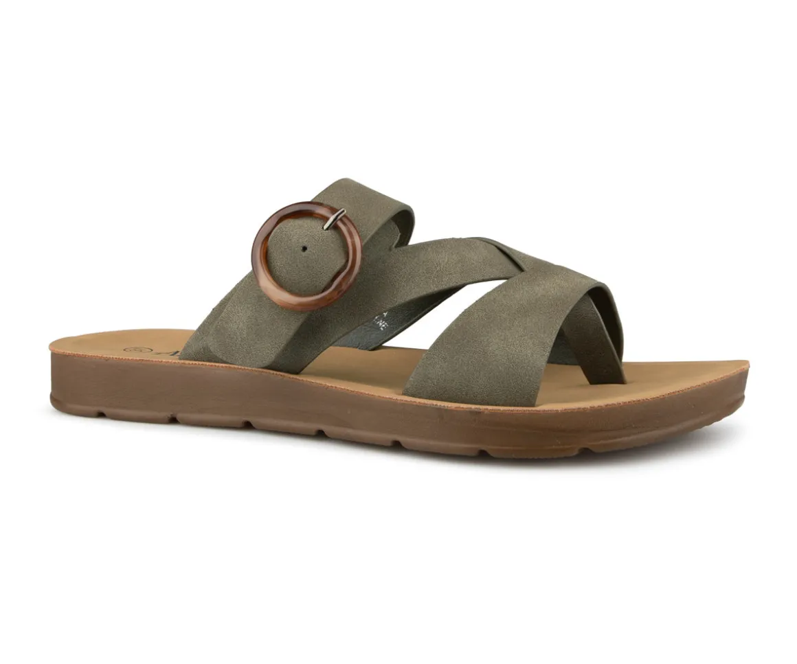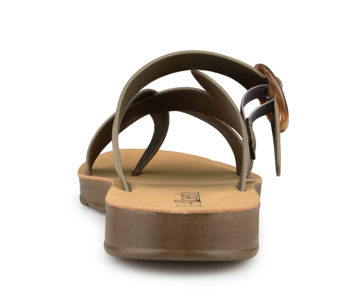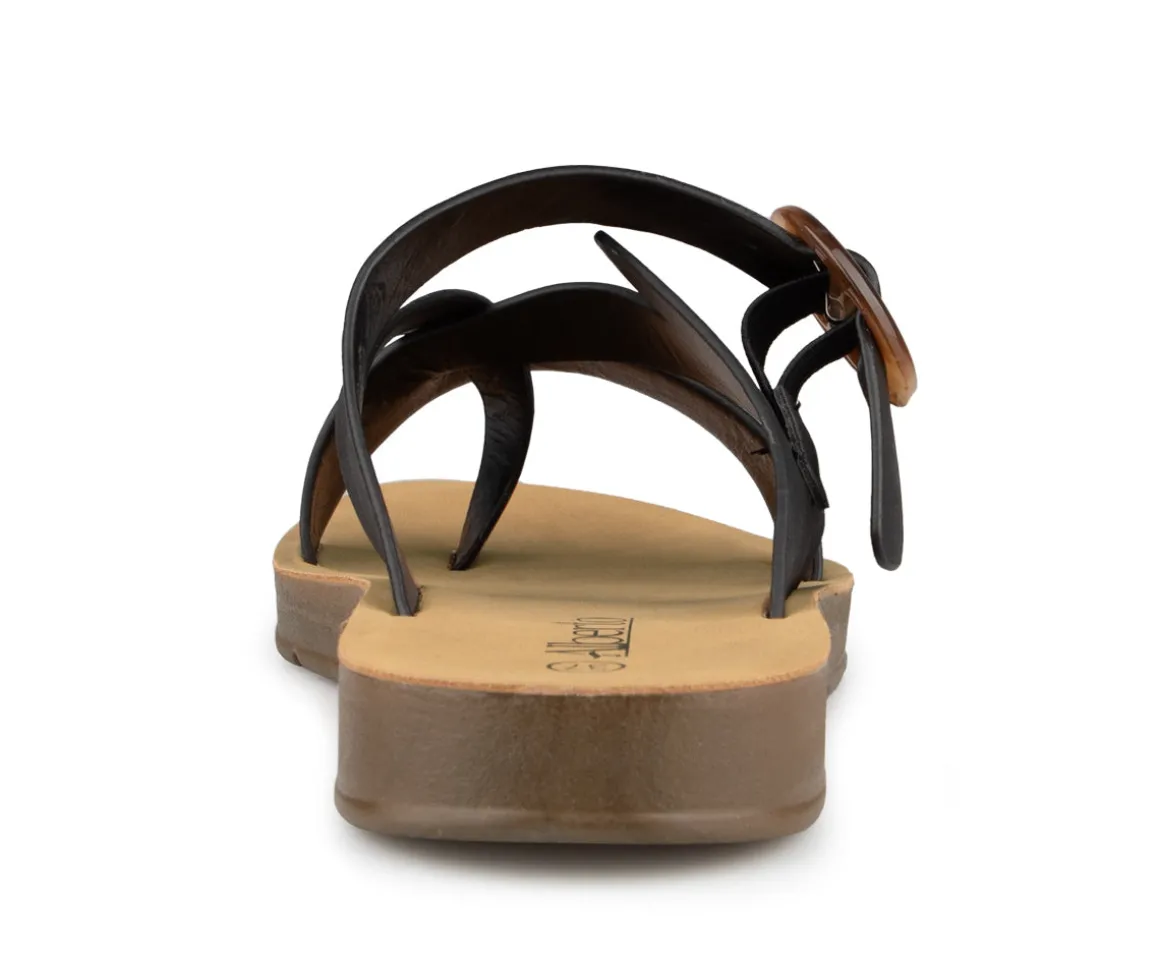 Sandale tong à talon plat Alberto pour femme avec courroie croisée ajustable. Un incontournable de votre garde-robe estivale.
