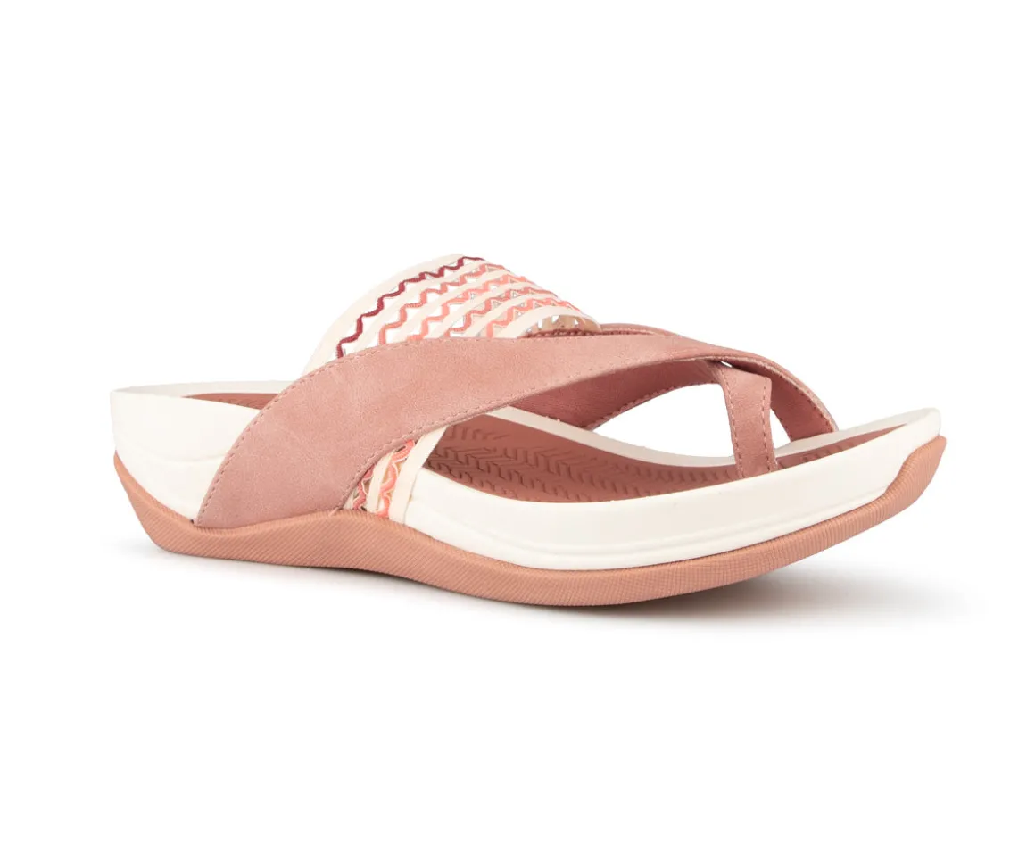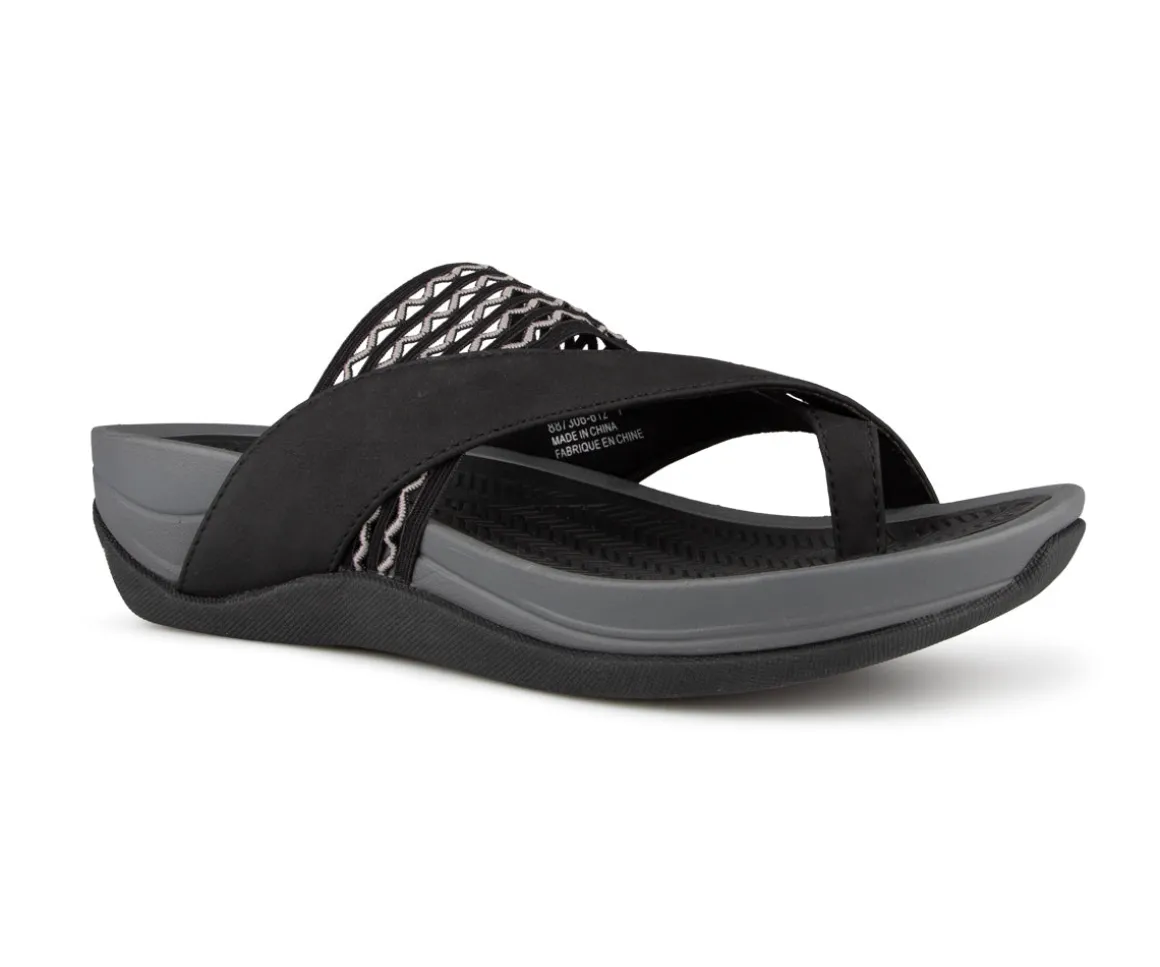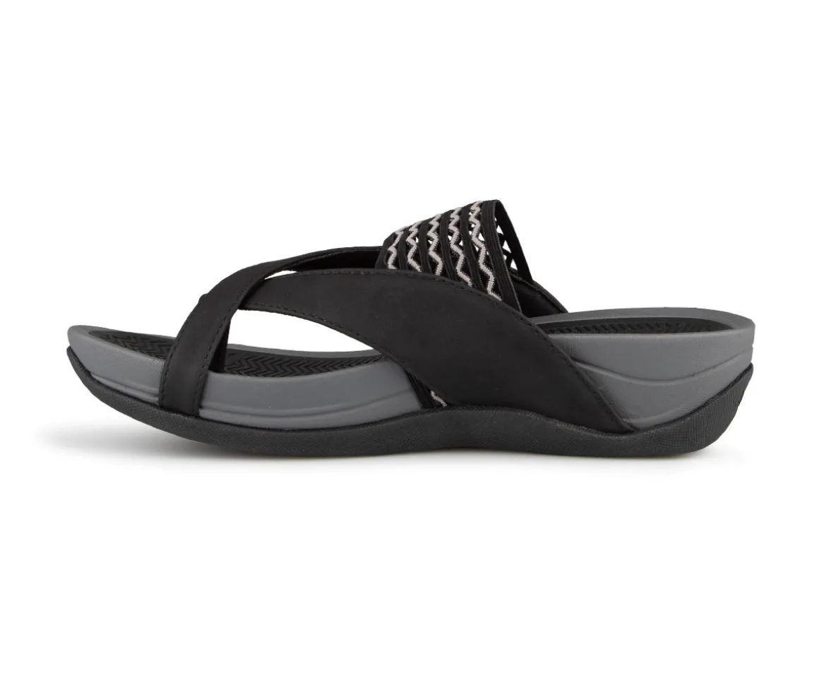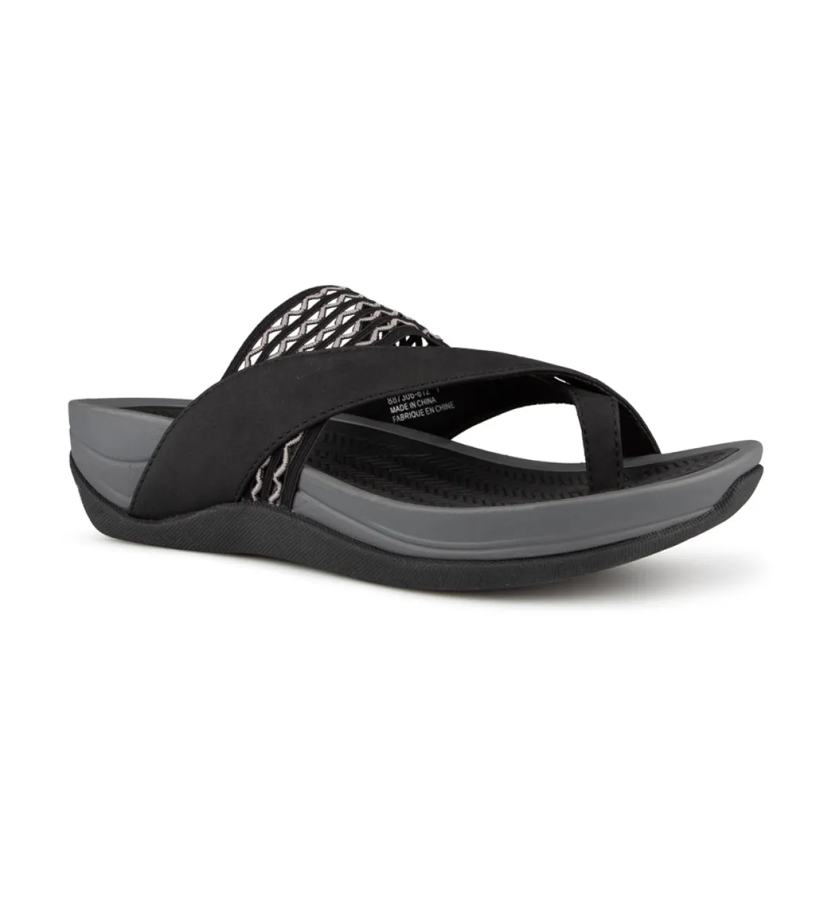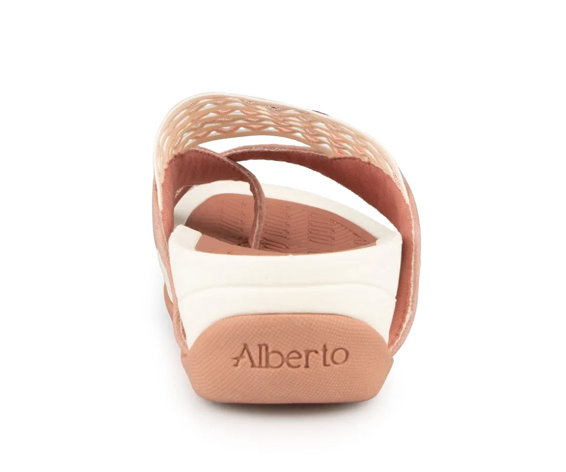 Sandale tong Alberto pour femme avec courroie à l’orteil ainsi qu’une bande élastique sur l’empeigne.