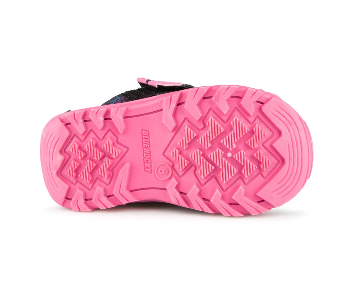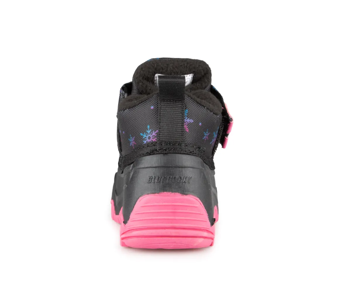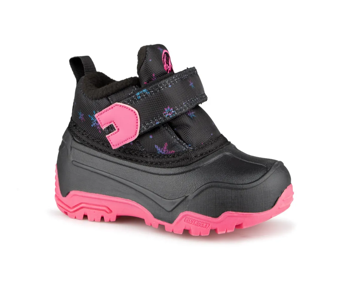 Bottillons pour petits enfants style duckies fait d’une tige en nylon et PU. Velcro à la cheville pour l’ajustement. Doublure en molleton de semelle de feutre 4mm.