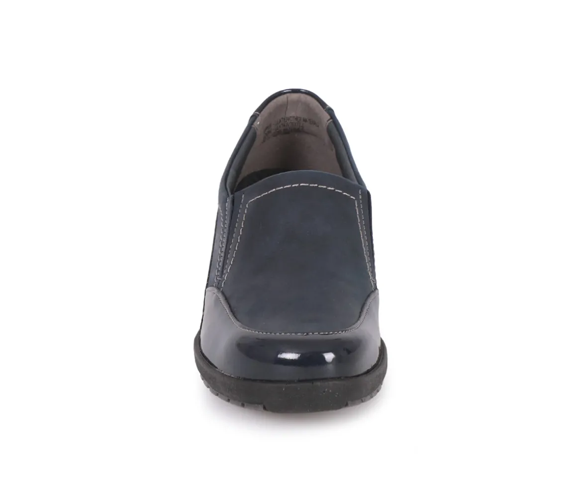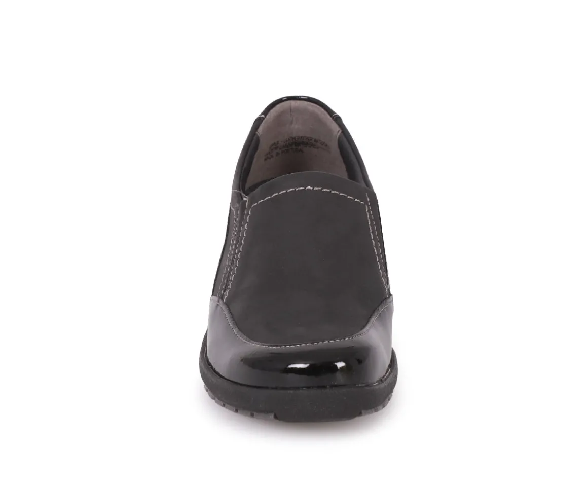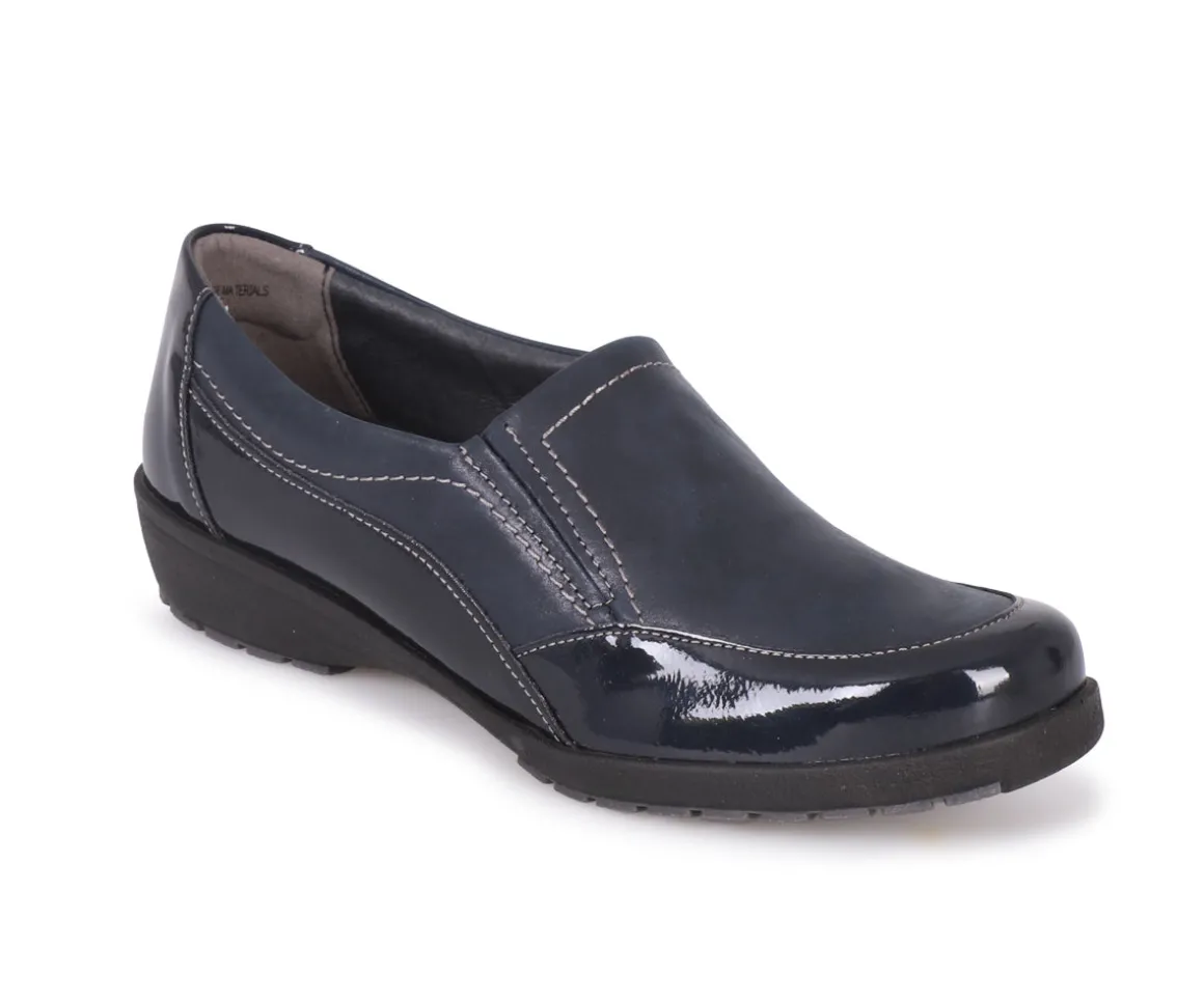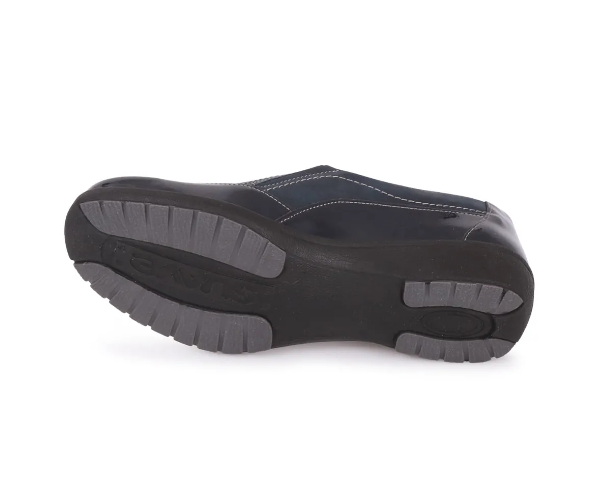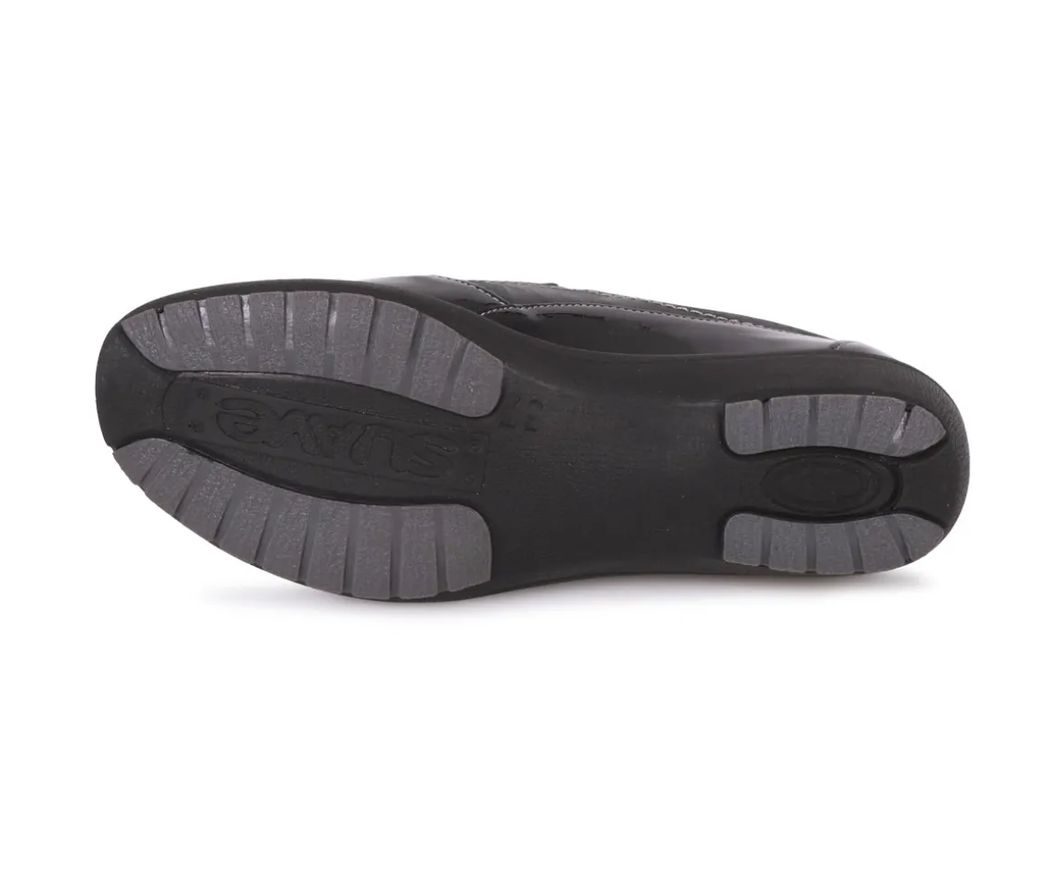 Ces souliers en cuir Suave pour femmes sont dotés d’élastiques sur l’empeigne pour un enfilage facile. Le talon compensé et la largeur B assurent un confort optimal, tandis que la semelle extérieure en TPR offre une bonne adhérence, faisant de ces souliers un choix pratique et élégant pour un usage quotidien.